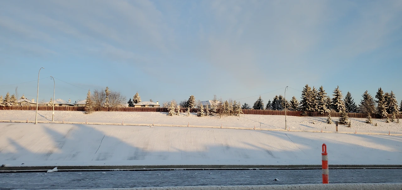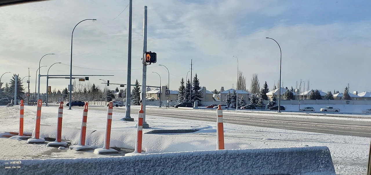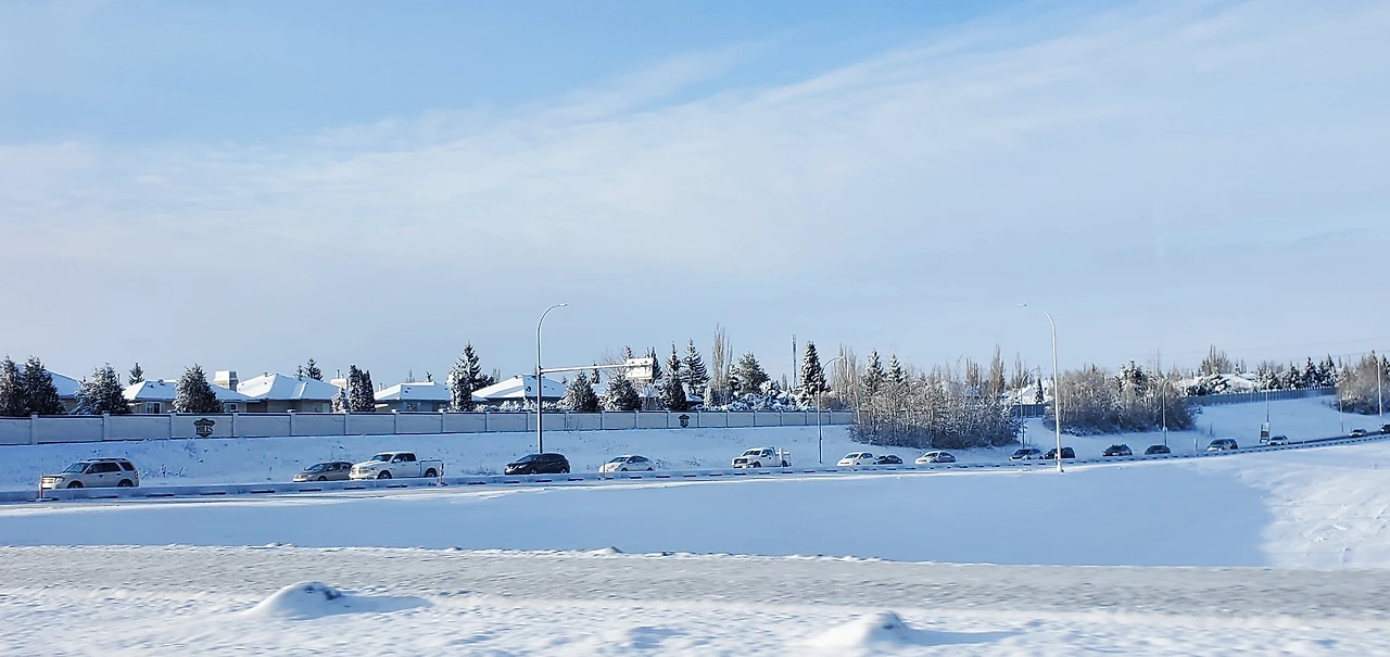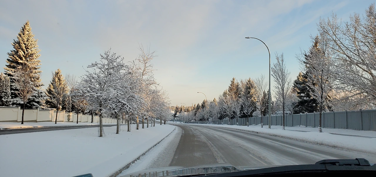 차를 꺼내서 동네 어귀부터 큰길까지 나가는 동안 눈 구경을 하느라 사진을 찍을 생각조차 하지 못하고 있다가 Terwillegar Drive에 들어서서 아차 하는 생각에 신호대기를 하는 도중에 사진을 몇 장 찍었다. 운전 중에 딴짓을 하면 안 되니까! ^^