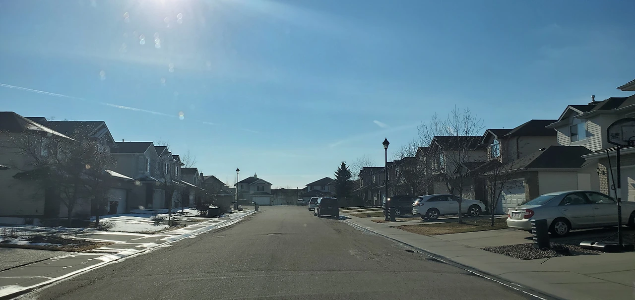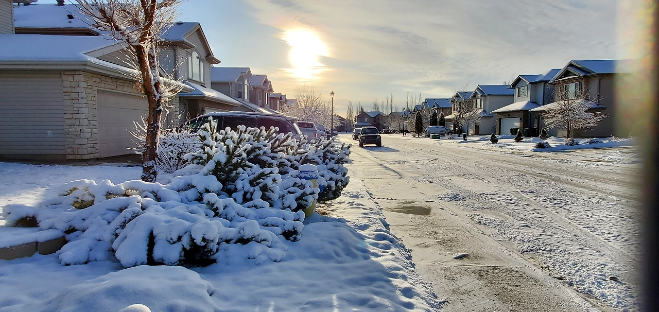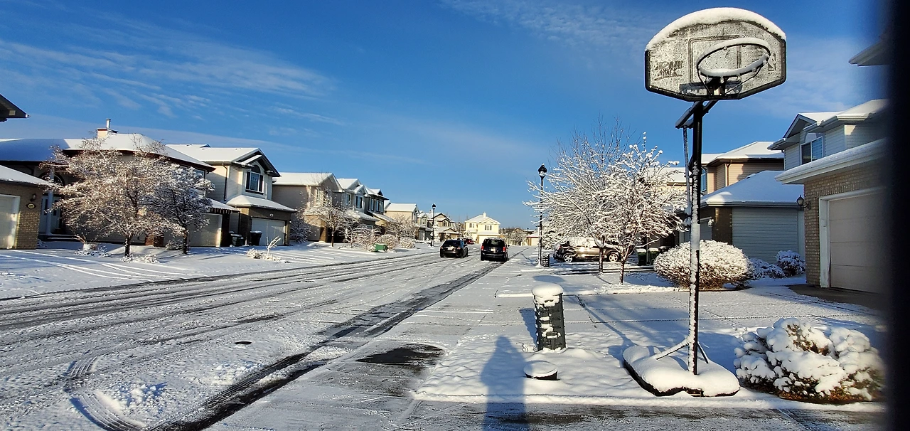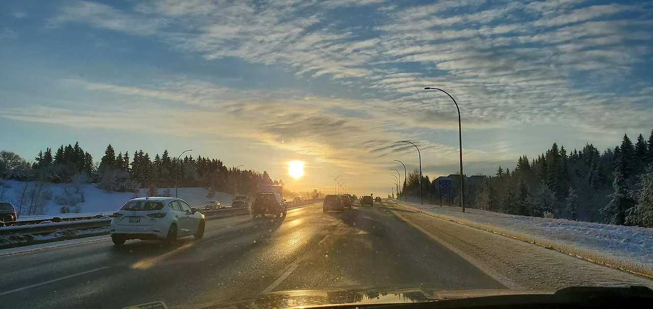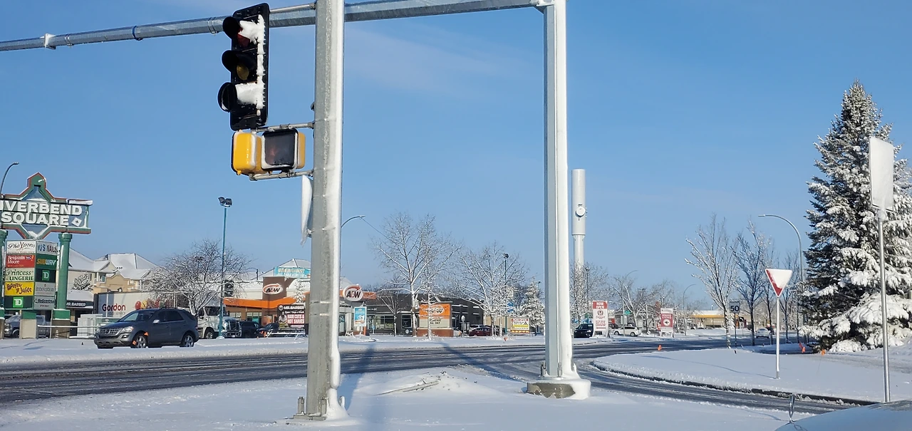 차를 꺼내서 동네 어귀부터 큰길까지 나가는 동안 눈 구경을 하느라 사진을 찍을 생각조차 하지 못하고 있다가 Terwillegar Drive에 들어서서 아차 하는 생각에 신호대기를 하는 도중에 사진을 몇 장 찍었다. 운전 중에 딴짓을 하면 안 되니까! ^^