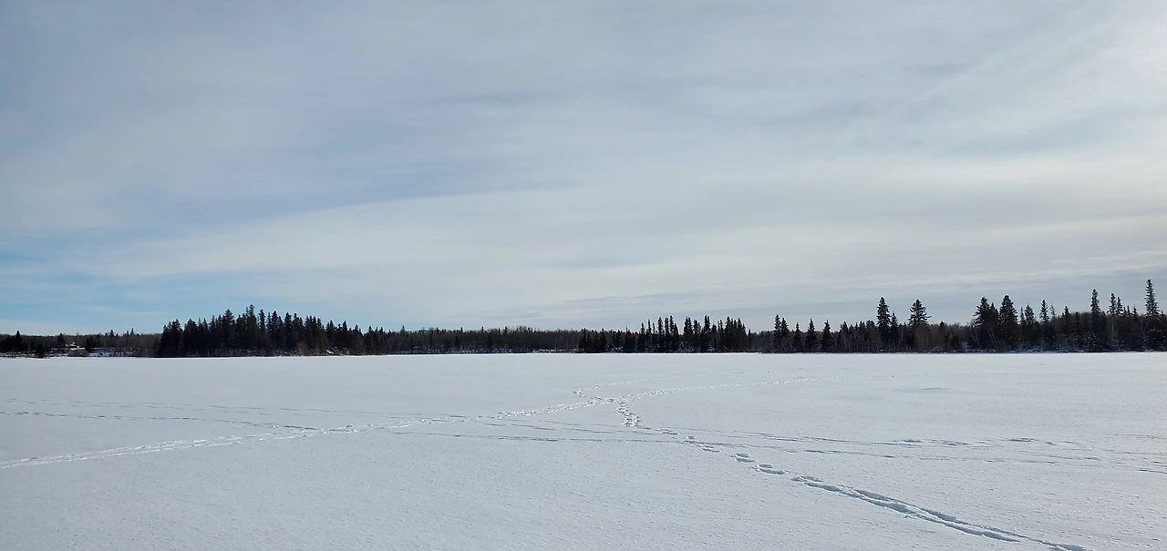 그래도 여기까지 나왔으니 호수 안쪽으로 발걸음을 옮겼다. 그래도 바람이 불지 않아서 걷다 보니 체온이 조금 올라간다. 얼음 위로 눈이 쌓여 있는데 사람들이 걸었던 발자국들이 이어져서 작은 길이 나있다. 멀리서 길을 따라가지 않고 혼자서 새로운 길을 개척하며 크로스컨트리를 즐기는 사람들도 보인다. 호수가 넓게 펼쳐져 있는 이곳을 물놀이만 해봤는데, 얼음 위로 걷는 것도 나름의 재미가 있다. 여름에 카누를 타고 호수 가운데에 있는 섬으로 들어와서 섬에서 사는 것처럼 보이는 사슴을 만난 적이 있는데, 물 한가운데 있는 섬을 지금은 직접 걸어서 들어간다는 것이 조금 색다른 느낌이 들었다.