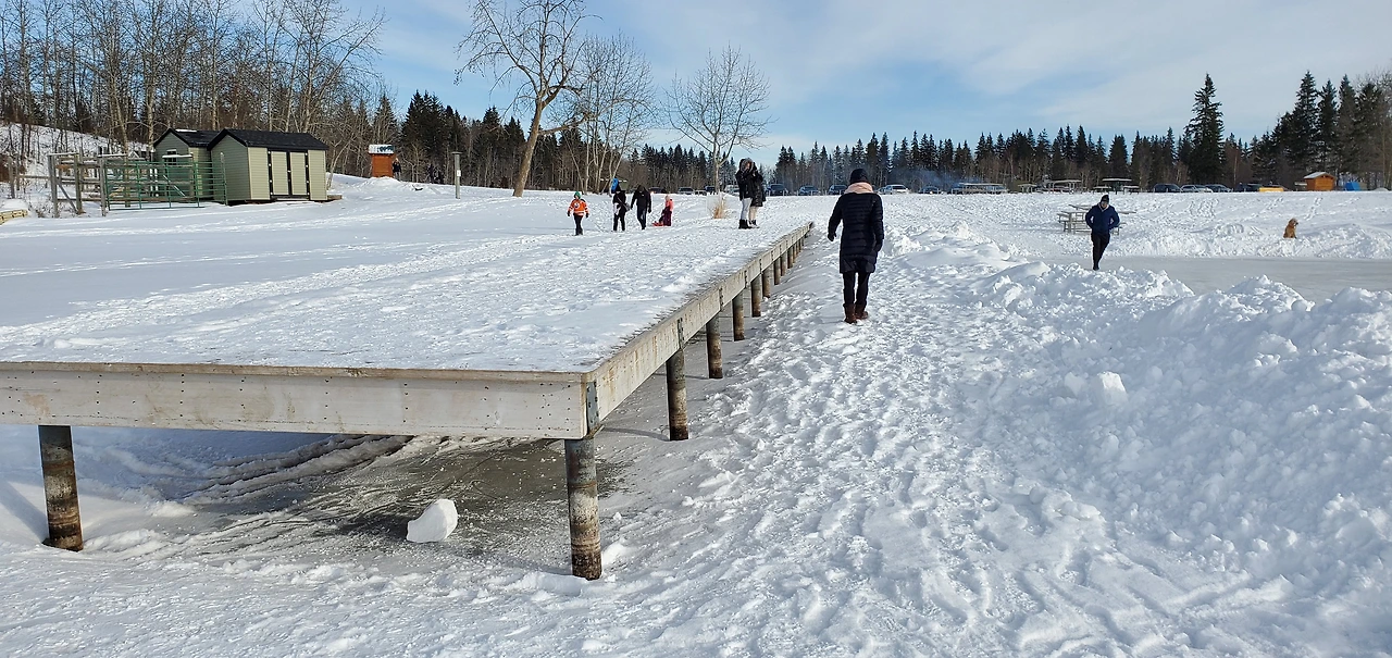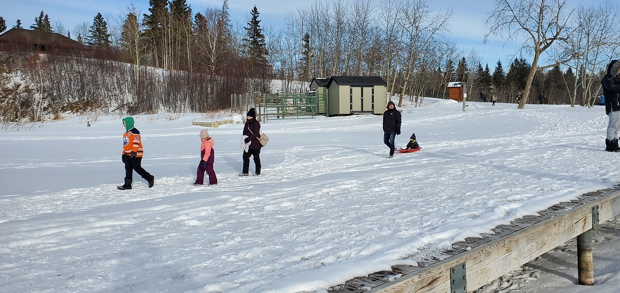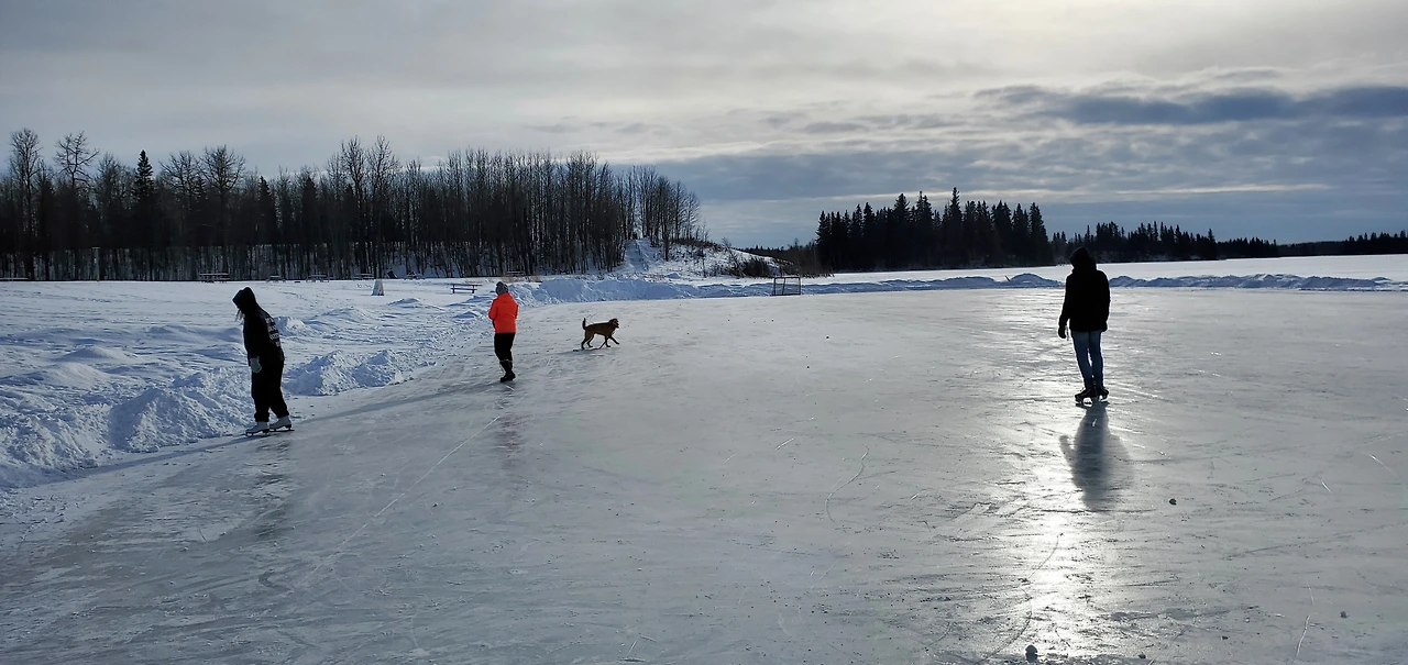섬을 돌아 나와서 호숫가로 나오면 보트나 카누를 내리고 탈 수 있도록 만들어 놓은 선착장옆에 네모난 아이스링크를 만들어 놓은 곳이 있어서 몇 사람이 아이스하키와 스케이팅을 즐기는 모습도 보였다. 그리고 주인을 따라 뛰어다니면서 미끄러지기를 즐기는 반려견이 우리에게 웃음을 만들어 준다.