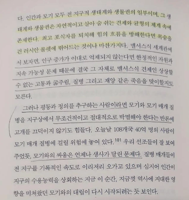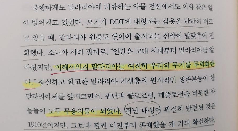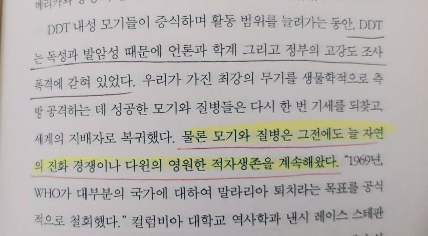 "모기와 질병은 늘 적자생존을 계속해왔다" (출처: <모기>, p. 597)