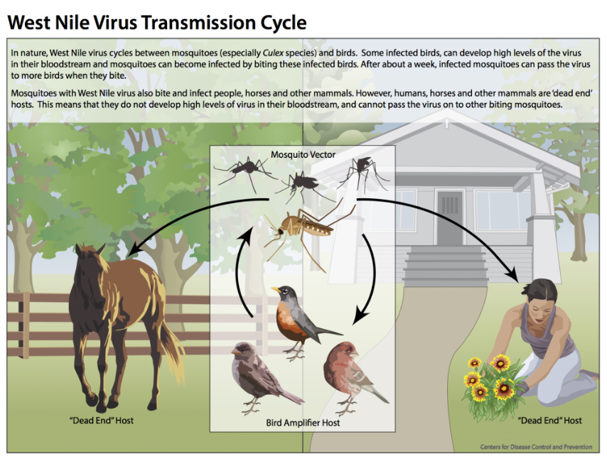 웨스트나일 바이러스 감염 경로 (출처: http://www.abcdcatsvets.org)