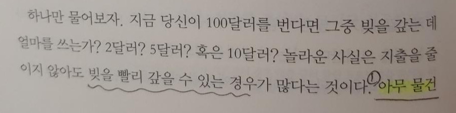 나는 라테를 사는 데 돈을 쓰지 말라고 잔소리하는 부모가 아니다. 나는 외식과 여행에 많은 돈을 쓰지만 전혀 죄책감을 느끼지 않는다. "비싼 물건에 돈을 쓰지 마!" 같은 단순한 태도보다 더 세련된 접근법을 취할 수 있기 때문이다. -<부자 되는 법을 가르쳐 드립니다>, p. 197