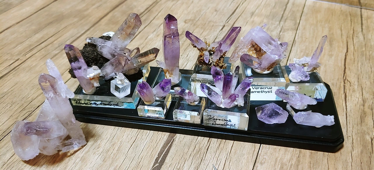 베라크루즈 자수정. 날씬하고 투명한 결정이 특징입니다. 그 중에서도 다양한 특징을 가진 돌들을 모아 보았어요.