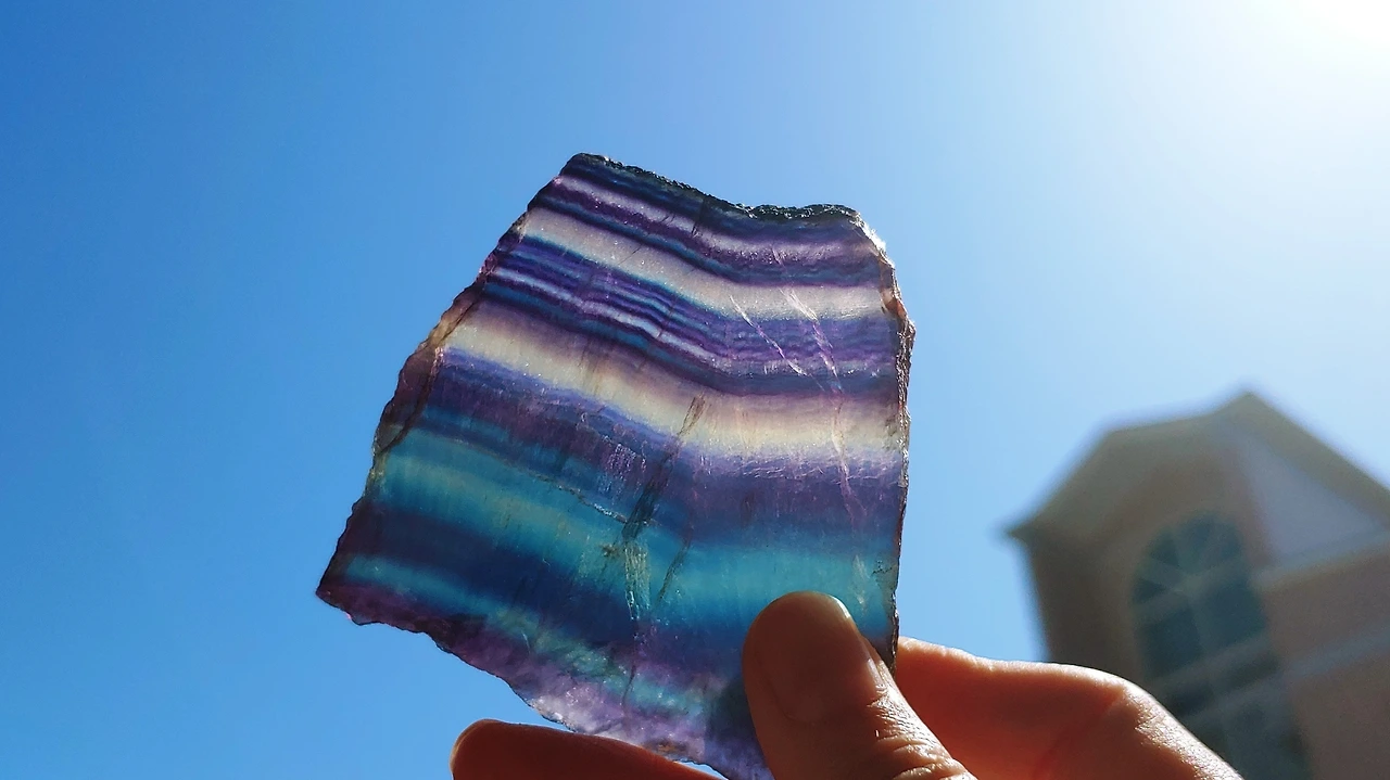 플루오라이트 슬랩. 무지개같은 결정층이 아름답습니다.