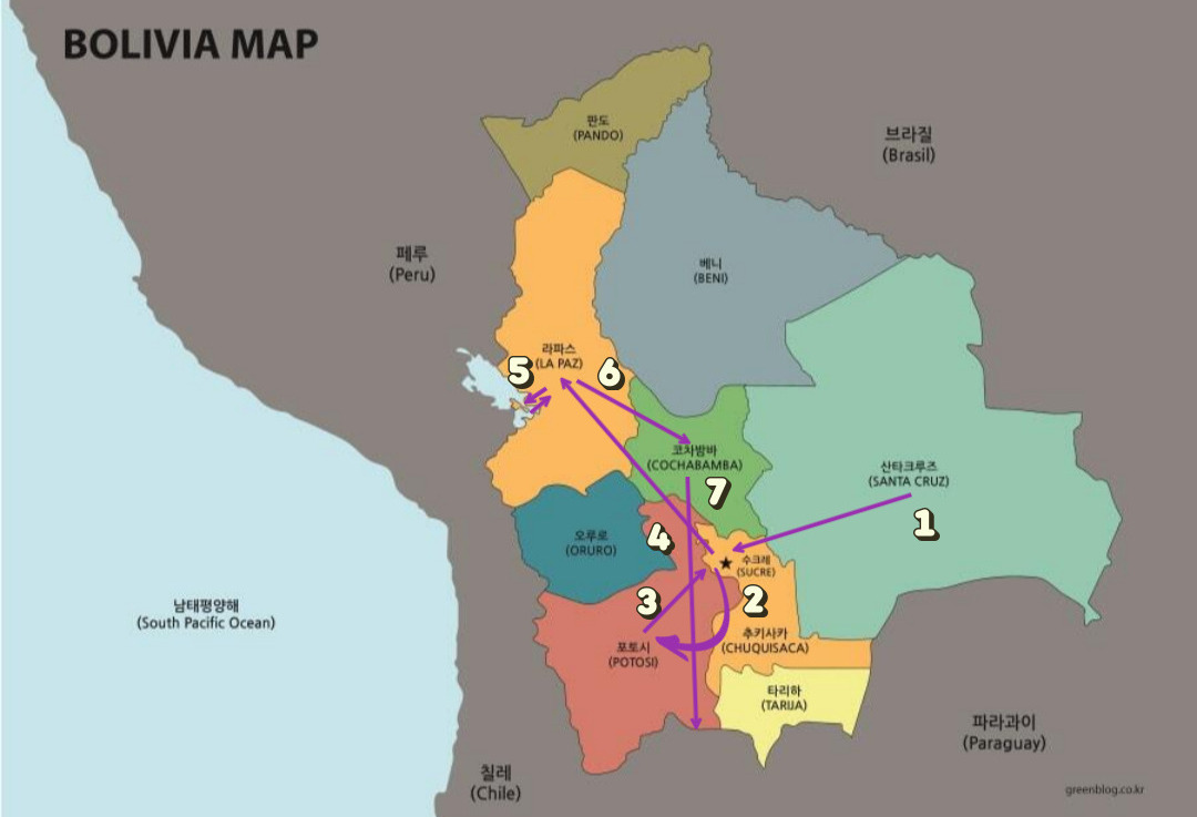 마치 코파카바나 호수를 건너는 버스와 같이, 나의 볼리비아 여행 루트는 비효율의 극치였다. 이로 인한 경제적, 시간적 낭비 등으로 이루 말할 수 없다. 계획 없이 다니면 이렇게 된다는 표본이 아닐까 싶다.