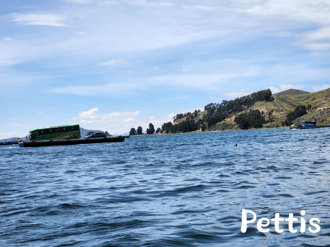 라파즈에서 코파카바나로 가는 길은 버스로 약 4시간인데 거기에 보트까지 탑승해야 한다. 보트를 약 5분 정도 탑승하는데 버스도 같이 이동하는 게 신기했다. 이 가까운 호수를 건너기 위해 버스를 화물선(?)에 태워 이동하는 모습을 보니, 굉장히 비효율적인 것 같았다.