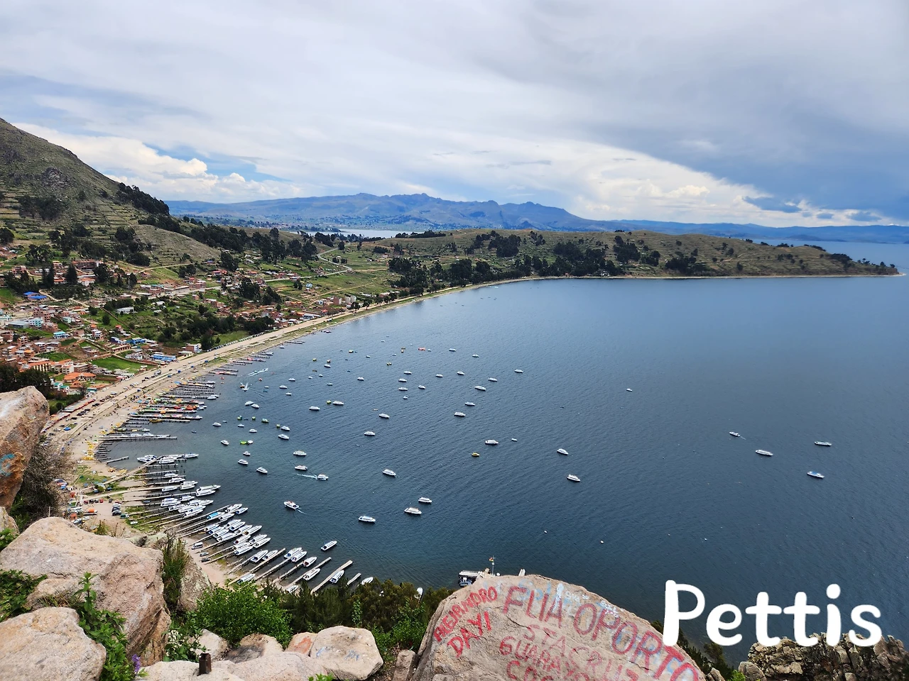 매료되었다는 그 사진이 바로 이곳, 코파카바나 전망대에서 내려다본 티티카카 호수다. 비록 괜찮은 셀카는 건지지 못했지만, 이런 풍경을 맨 눈으로 보고 있노라면 감히 '황홀하다'라고 표현할 수 있을 것이다. 이런 감정을 느끼기 위해 동선을 다 무시하고, 총 16시간 버스와 보트를 타고 왔구나 싶었다.