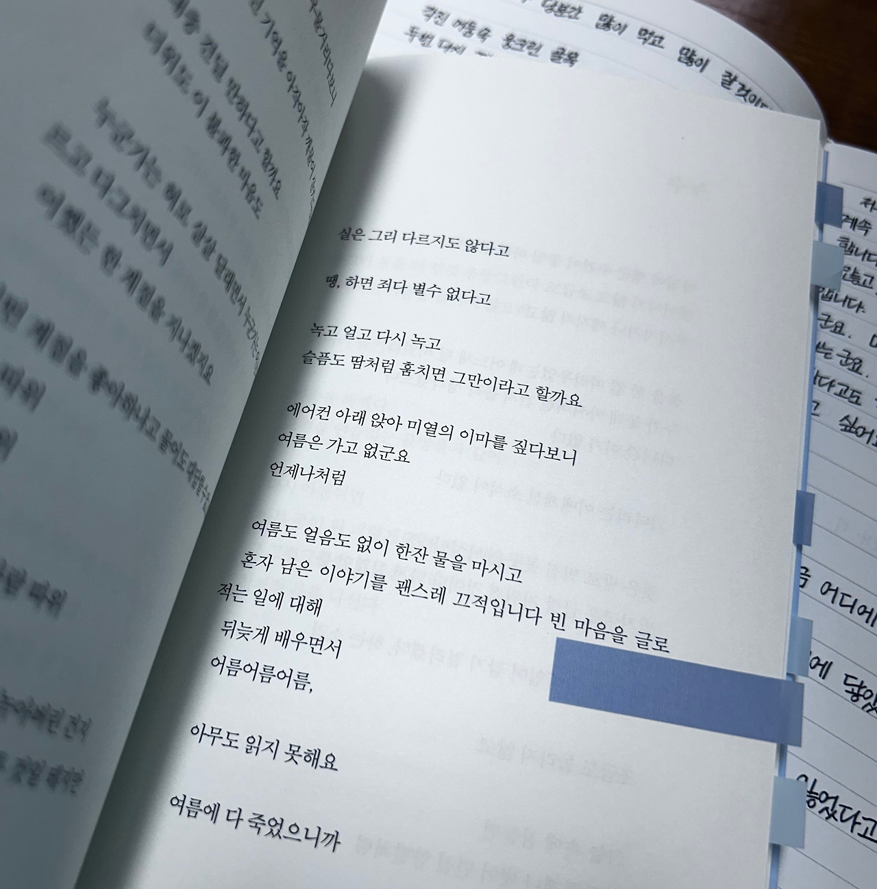 이 계절의 뜨거운 햇빛과 따스한 슬픔이 좋다.