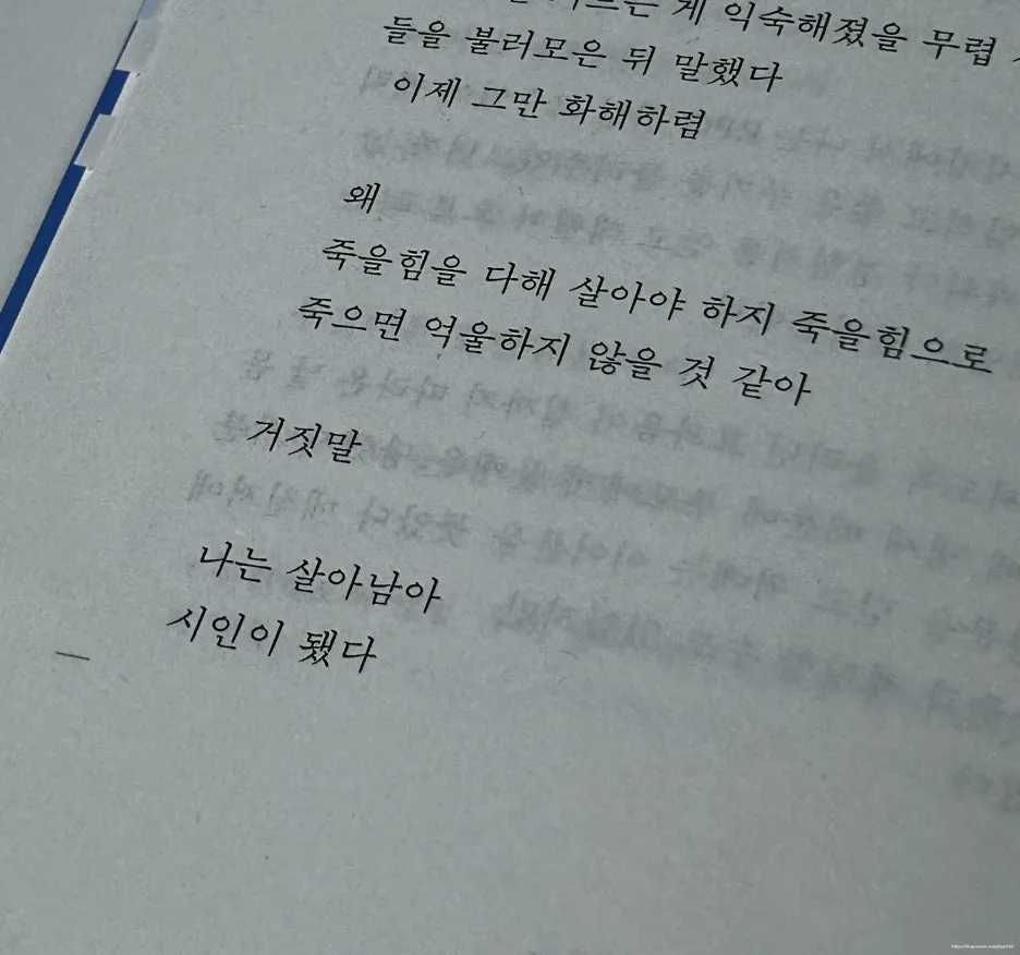 이제 너무 청소년과 멀어져 버렸나(ㅎㅎ) 마음에 와닿는 시가 몇 편 없었다.
