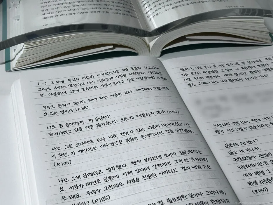 덕분에 우리 가족의 관계는 좋아졌지만, 그 속에 무엇이 여전히 비어 있는지는 서로 충분히 알고 있다. 그래도 우리는 몇 번이고 다시 서로에게 사랑을 다짐한다. 다짐하고 또 다짐하면 그것이 종국에는 사랑이 된다고 믿는 사람들처럼. (p.72)