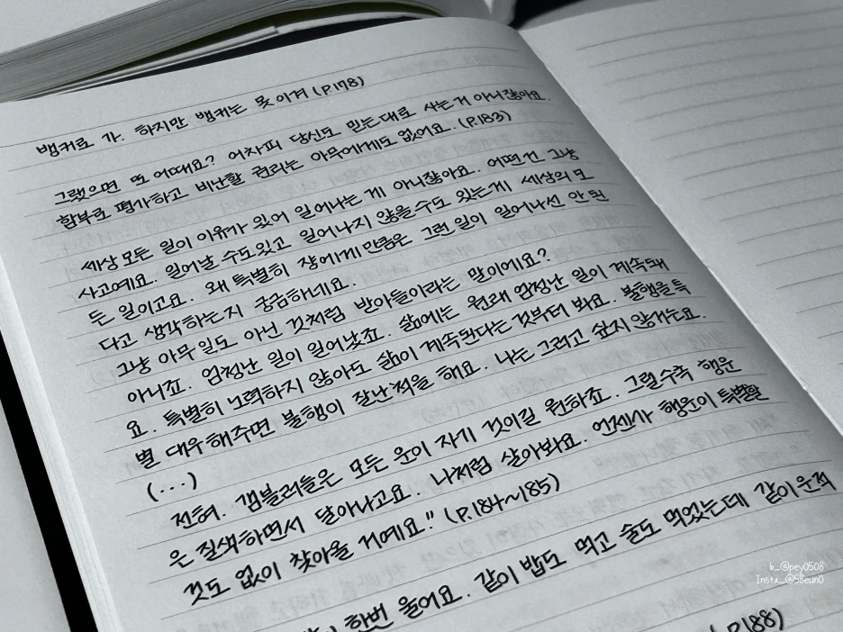 그들이 모두 무병장수했으면 좋겠다. 기왕이면 하고 싶은 일들 전부 이룰 수 있으면 좋겠다. 좋은 사람들과 어울리며 오래오래 행복하게 살 수 있으면 좋겠다. 그러나가 가끔씩 나를 떠올려 주면 좋겠다. (p. 218)