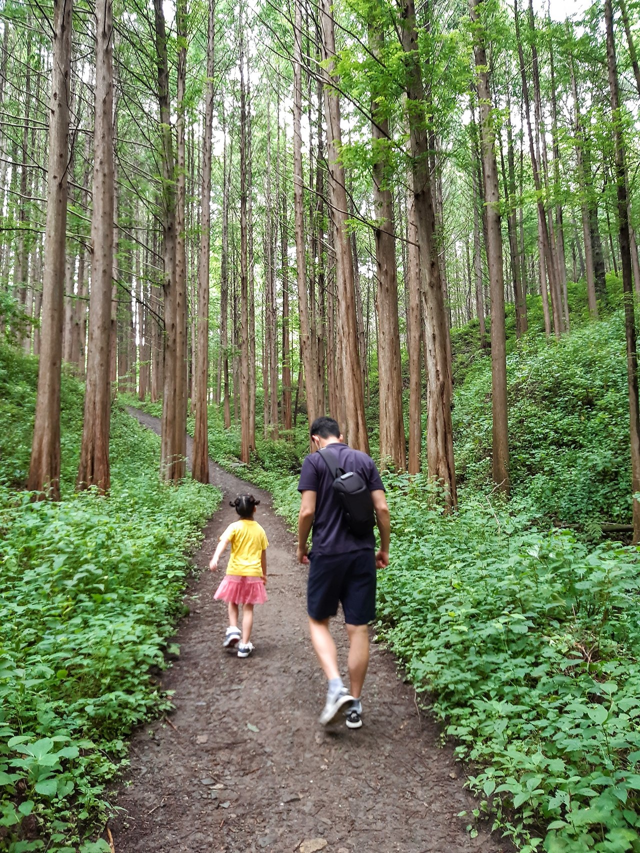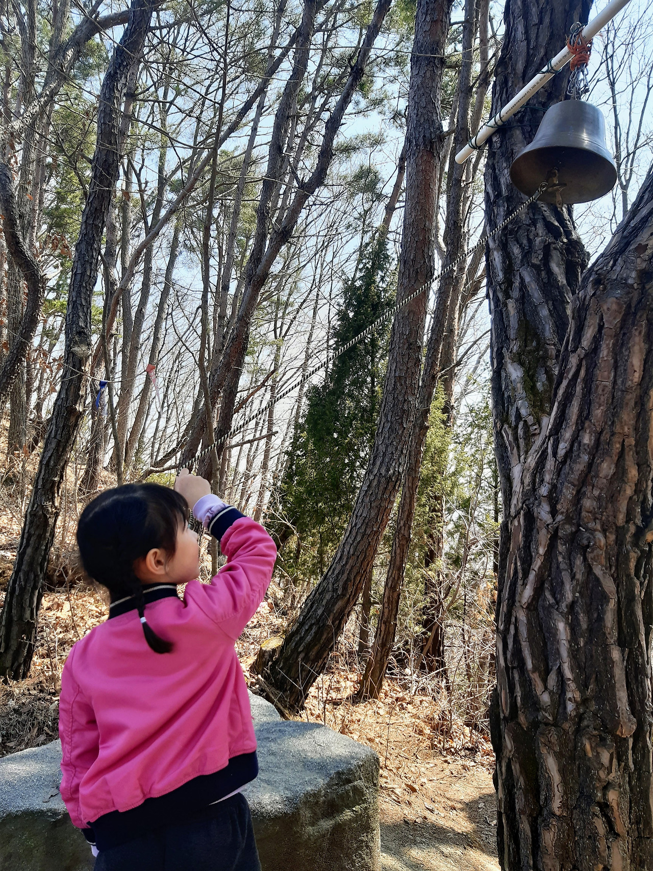 2020년이면 벌써 5년 전이니 첫째는 6살, 둘째는 3살이네요. 이 아기들도 정상까지 올라가서 행운의 종을 치고 내려왔으니 난이도는 제로에 가깝다고 보셔도 될 것 같습니다. ^^ 운이 좋게도 가기 전날 비가 와서 나무들은 평소보다 더 많은 양의 피톤치드를 아낌없이 뿜어주고 있었습니다. 길과 나무가 좀 젖어있는 게 사진에서도 보이지요? 가슴 깊숙이 숨을 끝까지 들이마시고 내쉬며 맑은 공기를 원 없이 마시고 아이들과 즐겁게 걷고 돌아왔던 정말 기억에 남는 여행이었습니다.