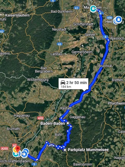 스트릿푸드로 배를 든든히 채운 후 우리는 검은 숲으로 가는 길로 들어섰다. 최종 목적지는 프랑스의 스트라스부르인데 그곳으로 가는 길에 고속도로에서 빠져나와 바덴바덴에서 시작하는 검은 숲으로 가는 B500번 도로를 타고 검은 숲 속의 신비한 호수 뭄멜제(Mummelsee)에 잠시 들러보기로 했다. 렌터카로 여행경로를 짤 때는 이동할 때 내가 가고자 하는 목적지로 바로 갈 것이 아니라 같은 방향에 있는 매력적인 장소들을 찾아 조금 돌아가면서 둘러보거나 드라이브하기 좋은 유명한 도로가 없는지 미리 검색해 보길 추천한다. '고속도로를 타고 A에서 B로 쏘세요' 식의 경로를 짤 필요가 없다. 우리는 자유로우니까. ^^