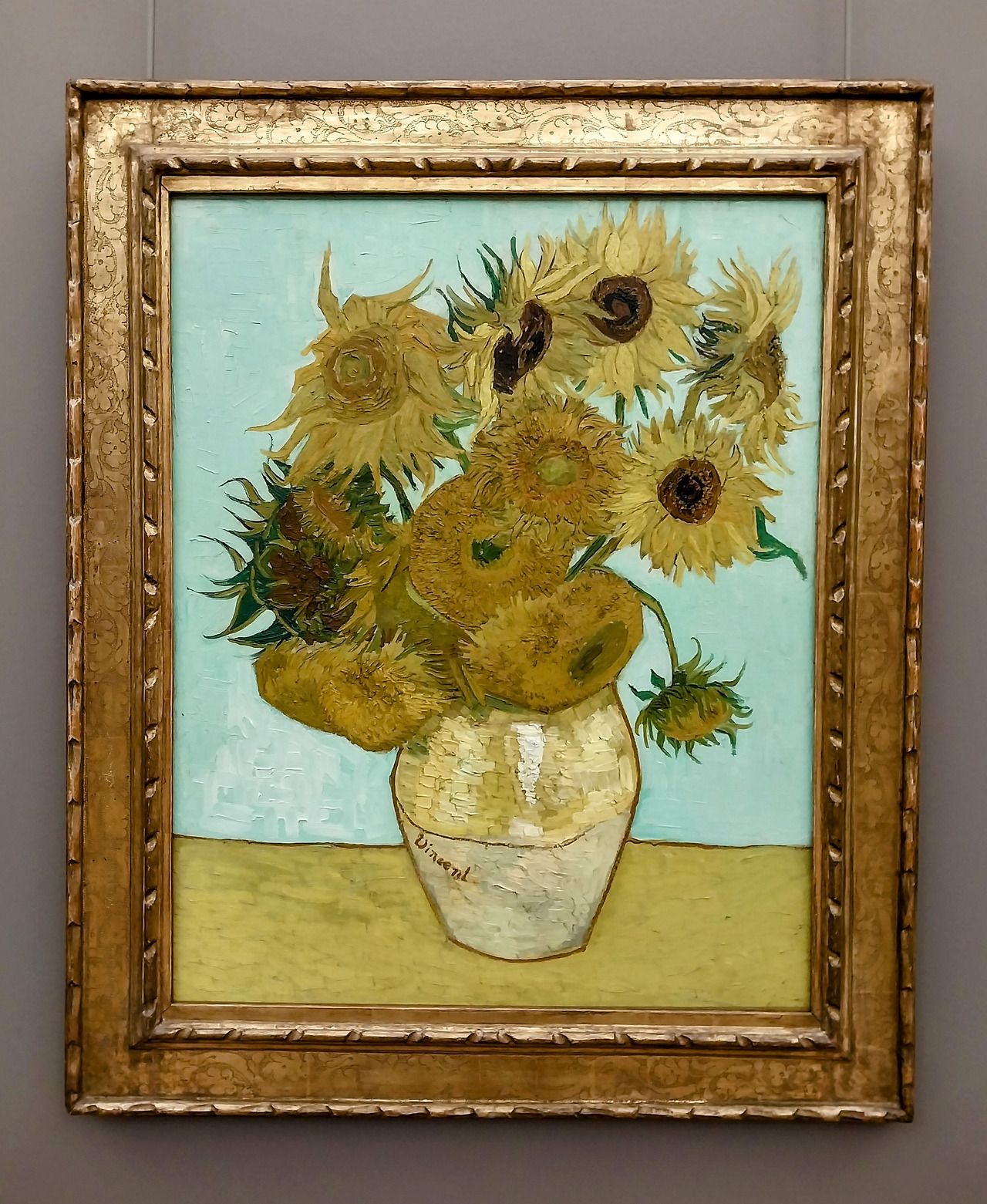 여러 가지 버전의 해바라기 중에 민트색 배경의 1888년 작품.