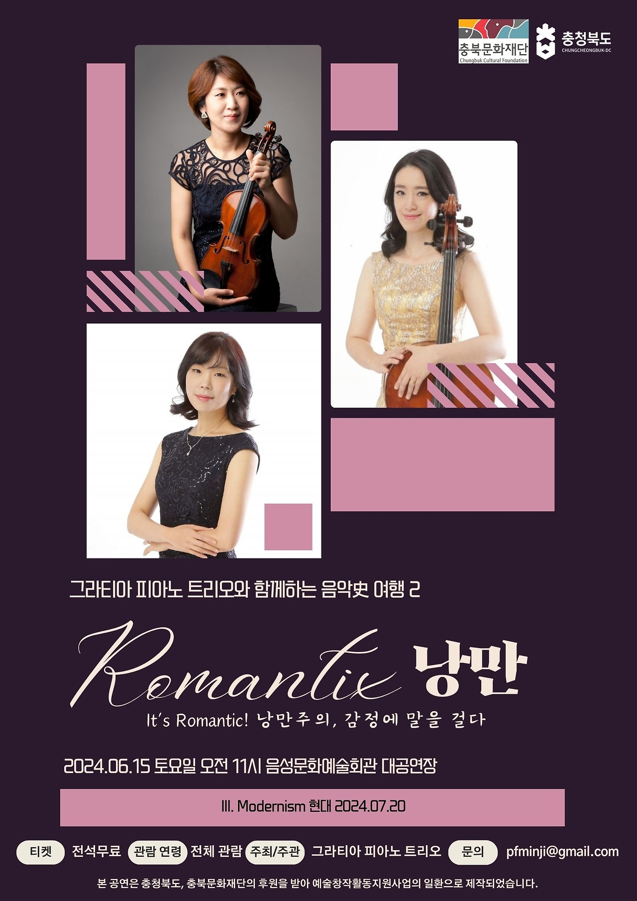 충북에 내려와 살면서 점점 이 지역에 대해서 알게 되고 2022년 겨울 Rootsquare 독주회를 시작으로 저는 기획사의 대행 없이 제가 1인 기획사가 되어 움직이기 시작하였습니다. 저 혼자 하는 독주회보다는 그라티아 피아노 트리오로 실내악 연주회를 하고 싶었고 분주히 동분서주한 결과 그라티아 피아노 트리오는 2024년 충청북도에서 지정한 전문예술단체가 되었고 충북문화재단의 지원도 받게 되어 총 3회의 시리즈 연주회를 성공적으로 개최하게 되었습니다.