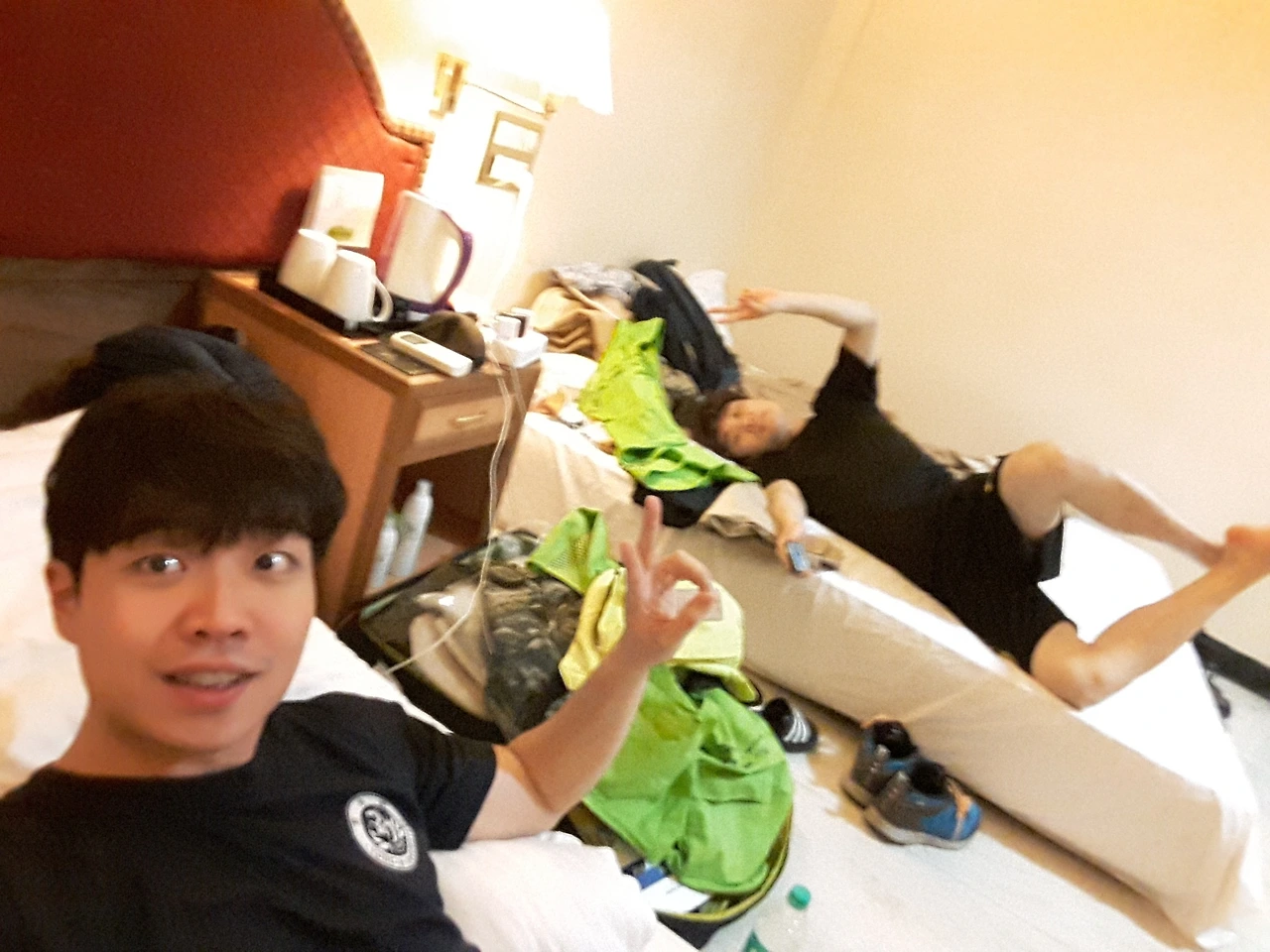 룸메이트 준형이랑 짐도 풀지 못하고 숙소에서 뻗었을 때.