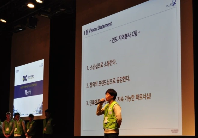 인도뿐만 아니라 중국, 베트남의 다양한 지역들에 파견을 가다 보니 대략 500여 명의 봉사단원들이 모였고, 처음으로 그 정도 규모의 사람들 앞에서 발표를 해봤다. 내 인생 최고의 떨리는 순간이었다.