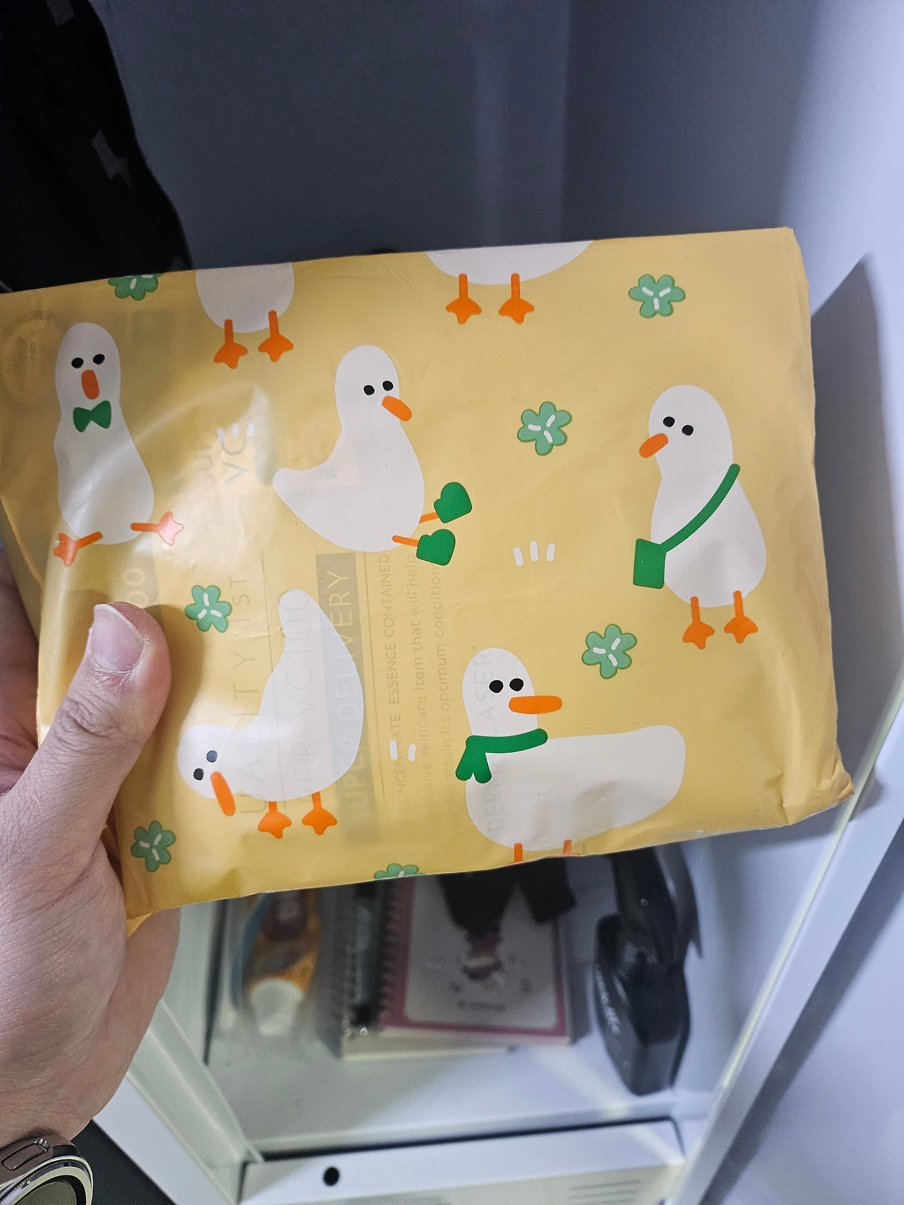 출근하자마자 입사동기의 깜짝 선물을 보고 기분 좋아져 버리기.