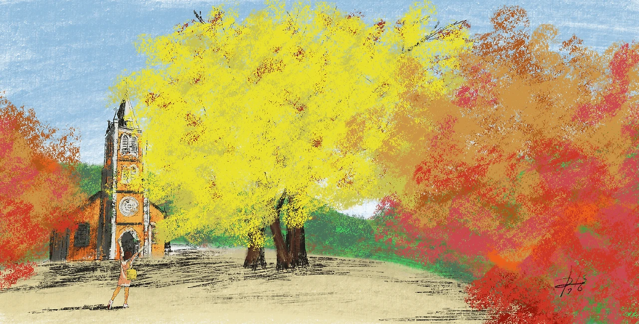 #여행가고싶다 #가을싸돌아다니기 #어반스케치라해야하나? #풍경그림 #일러스트 #삽화 #아우야요 #풍수원성당 #감성감성 #순수소년시절 #가을가을하다