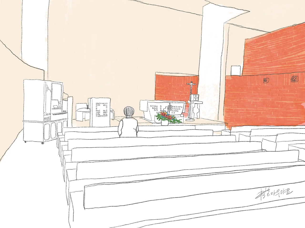 나도 조용히 앉아 이곳 경당에서 수많은 이야기를 내려놓는다.