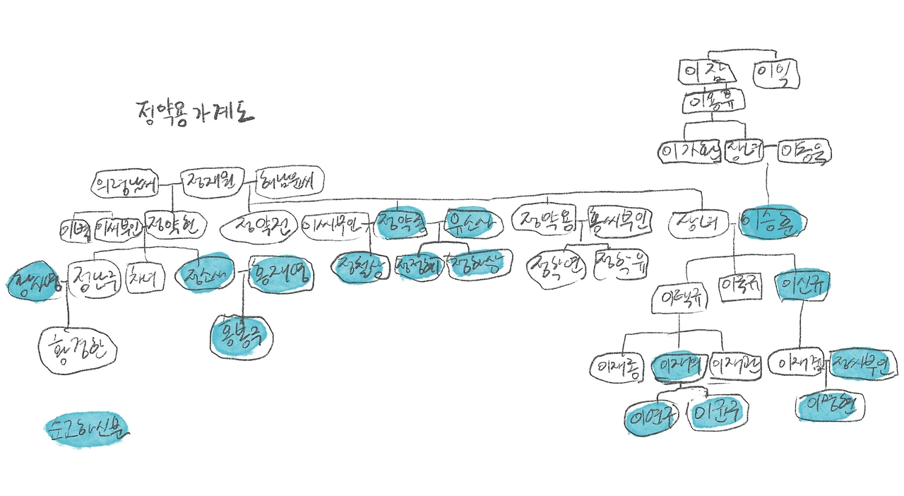 먼저 이 분을 이해하기 위해서는 지하 3층 상설전시실의 정약용 가계도를 살펴보아야 한다.