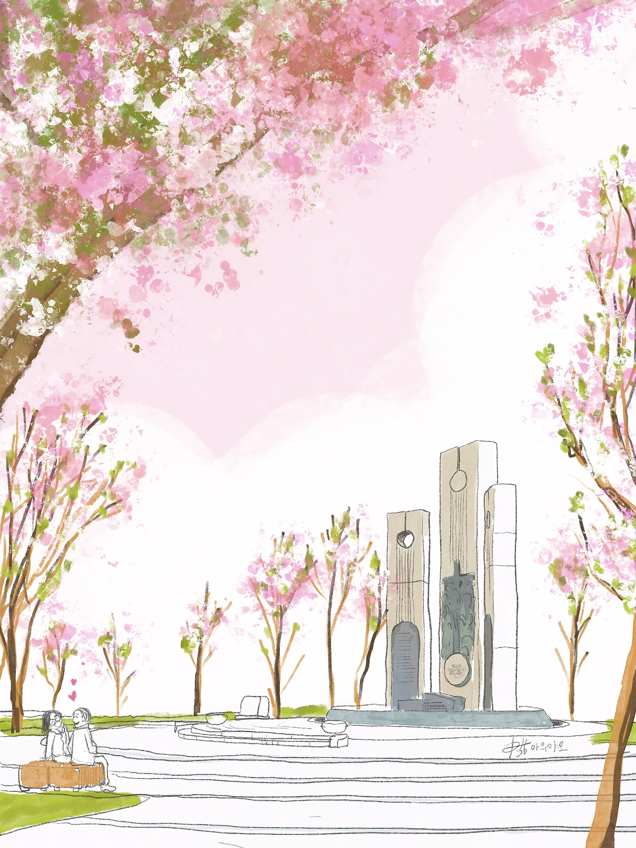 어젯밤 늦은 퇴근 후 씻고 누웠다. 비 그림을 그리고 싶었다. 순간 떠오른 장면이 박물관 공원에 있는 '현양탑'이다.