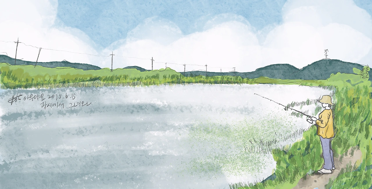 새로 그리고픈 그림책의 배경이 예쁜 저수지이다. 과거 추억에서 아름다운 그녀와 풍경을 찾아 그려본다.
