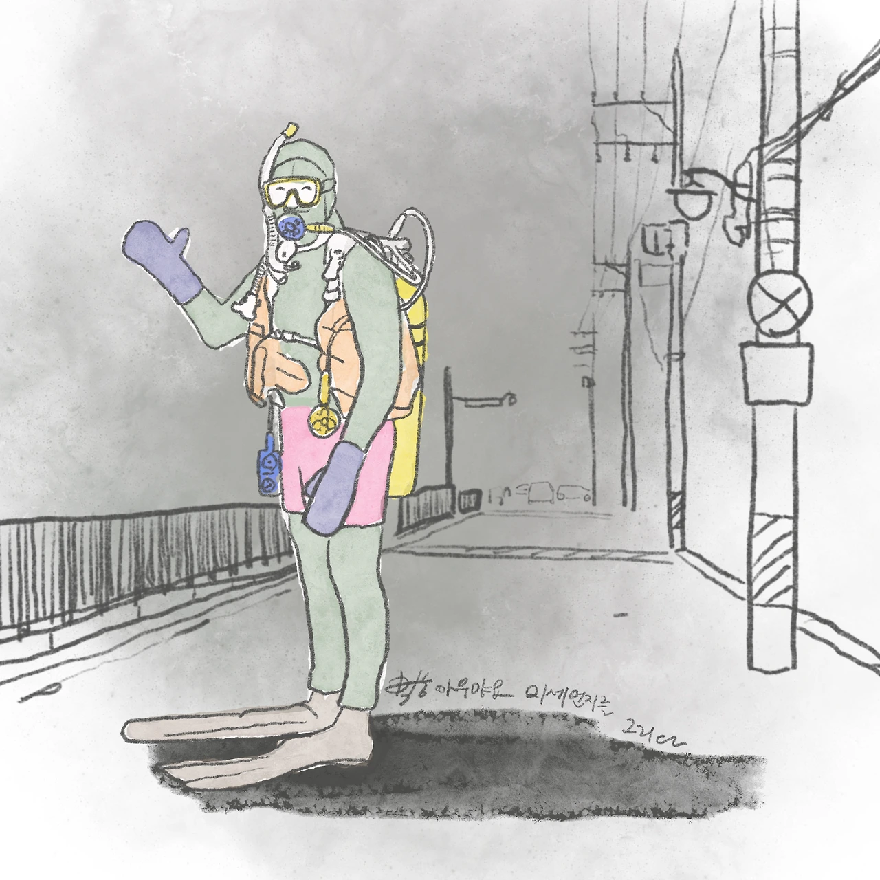 #미세먼지를그리다 #미세먼지 #초미세먼지 #나쁨 #바다 #아닌 #일상에서 #스쿠버다이빙 #오늘의외출룩 #오늘의코디 #오늘의외출복