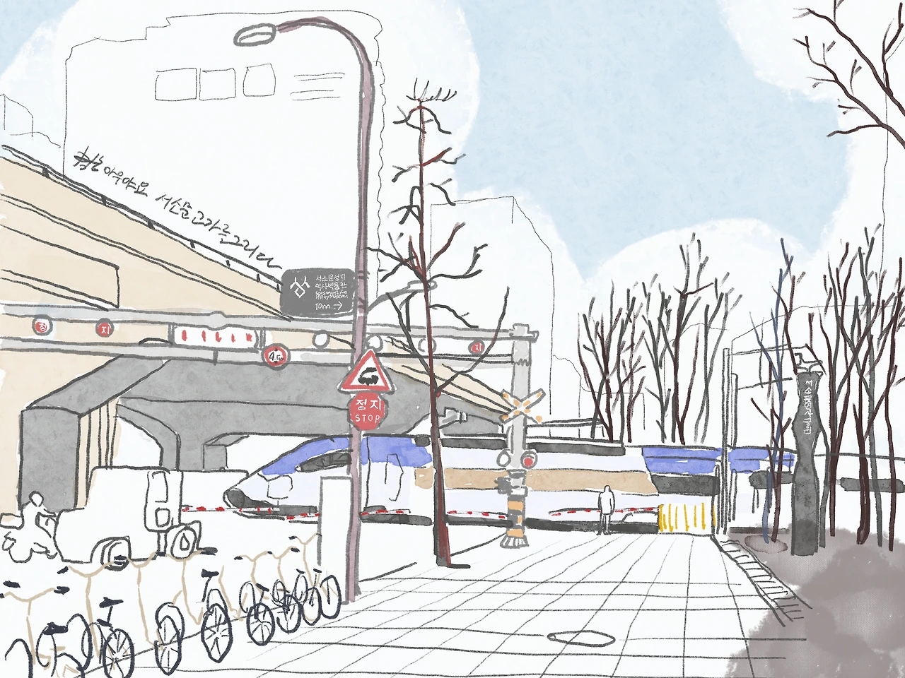 그러면 KTX와 무궁화 호, 전철 등 다양한 열차가 지나간다. 난 가끔 창안에 누군가가 반응하기를 바라면서 손을 흔든다.