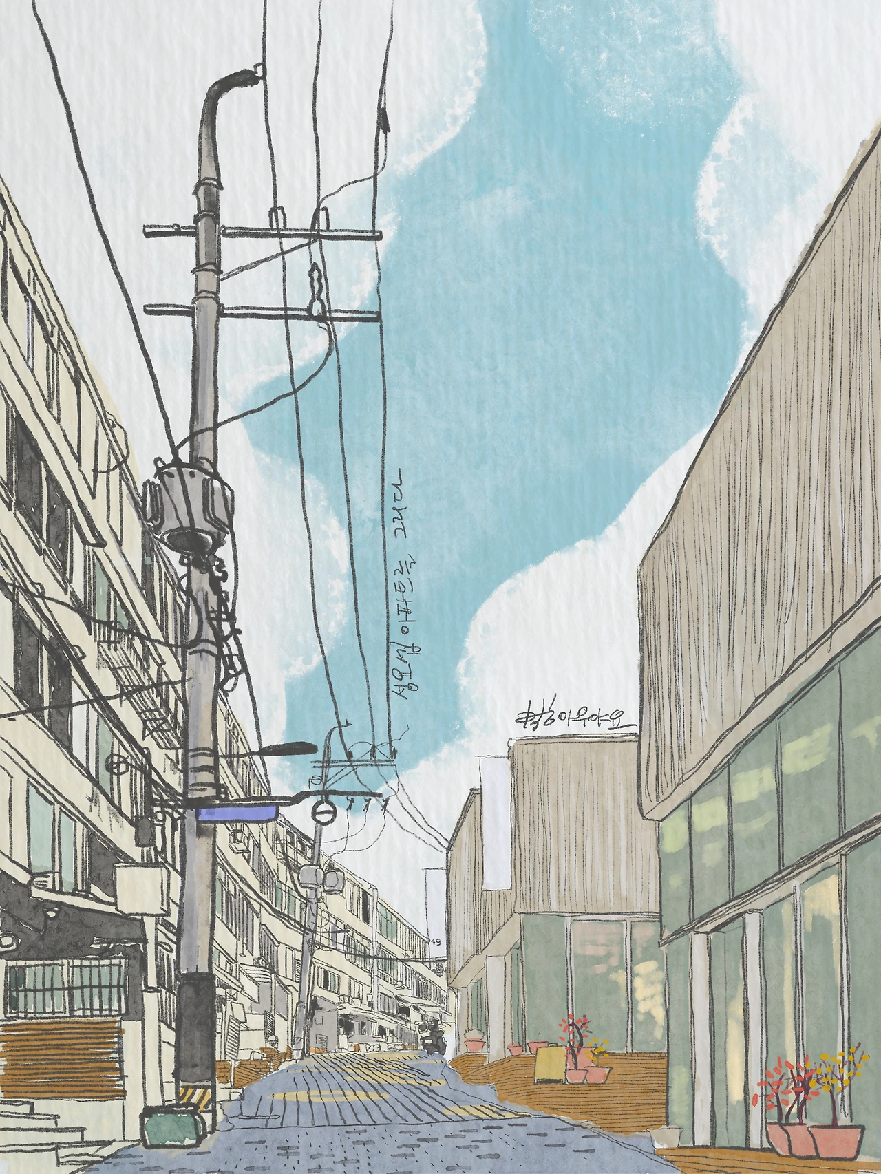 서소문 아파트이다. 이 그림과 위 성요셉 아파트 그리는데 1주일 정도 걸린듯하다. 시간 날 때마다 방문해서 스케치하고 사진 찍고 다시 그리고… 재미난 작업이었다.