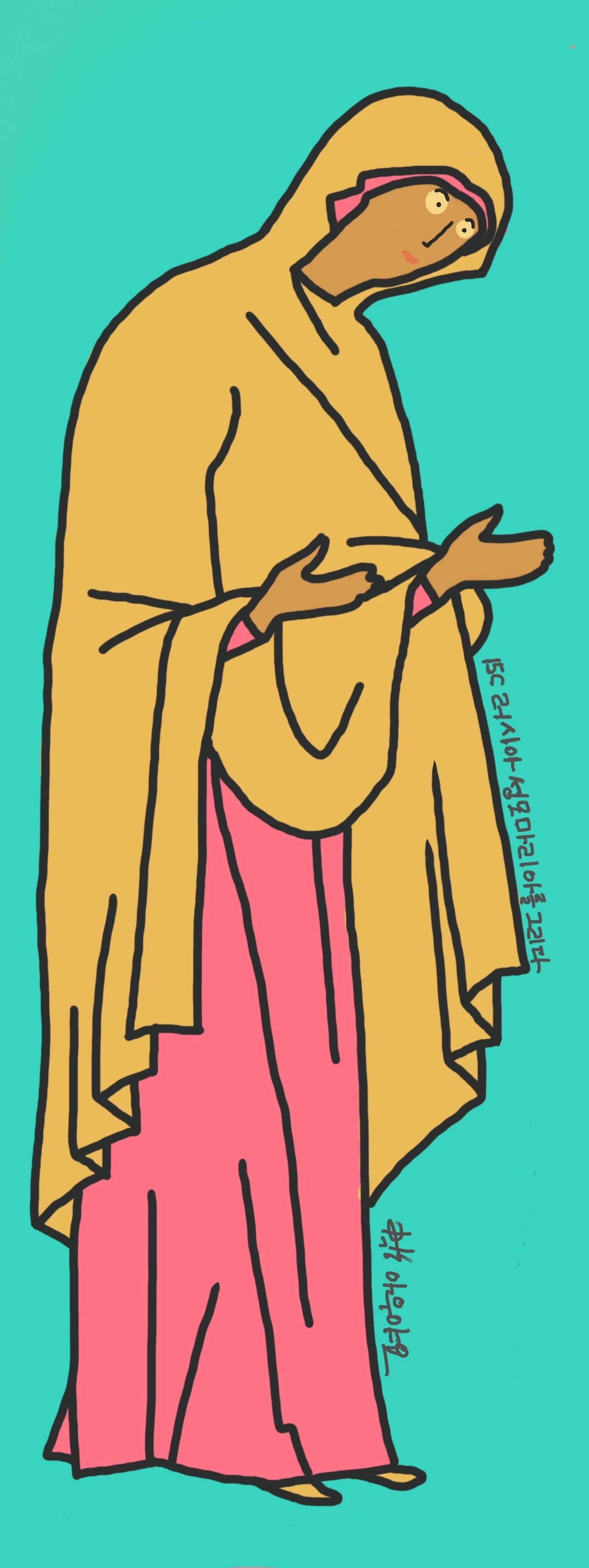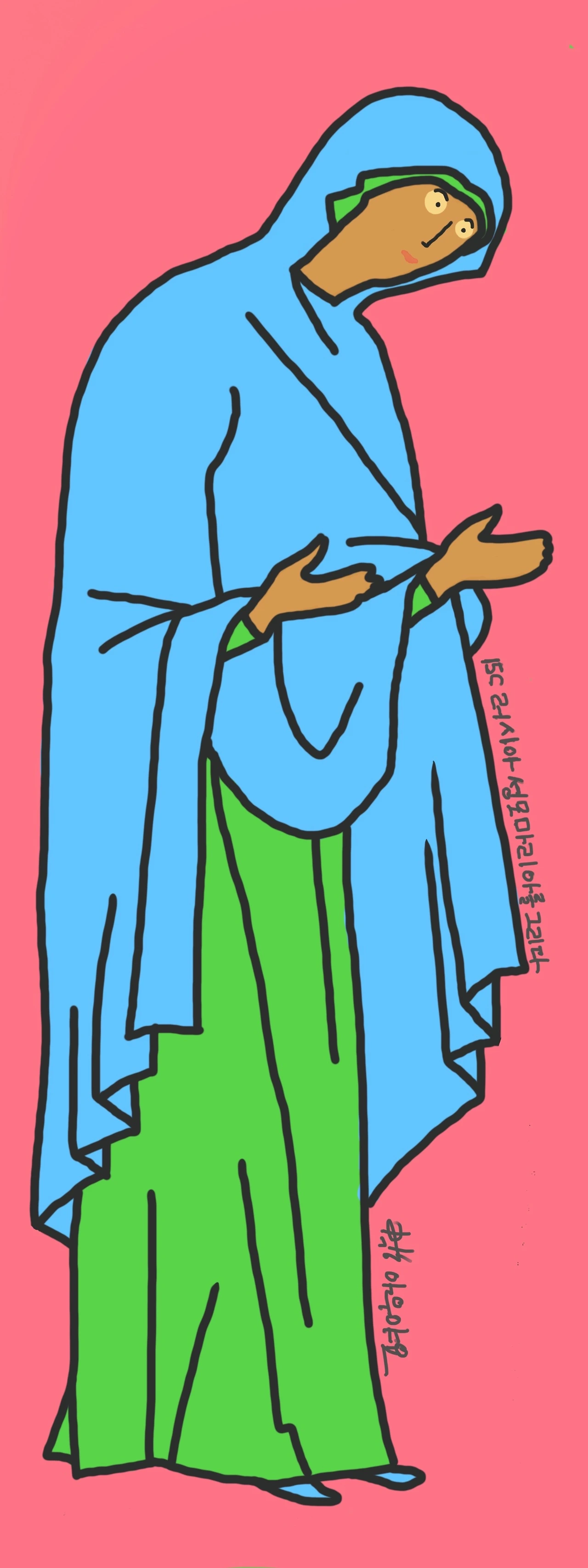 15세기 로스코프 지역에서 그려진 '손으로 만들지 않은 구세주 - 아케이로포이에토스' 만델리온과 '성모 마리아, 성화대 데이시스'를 내 감각에 맞게 재 해석해서 그림을 그려봤다.