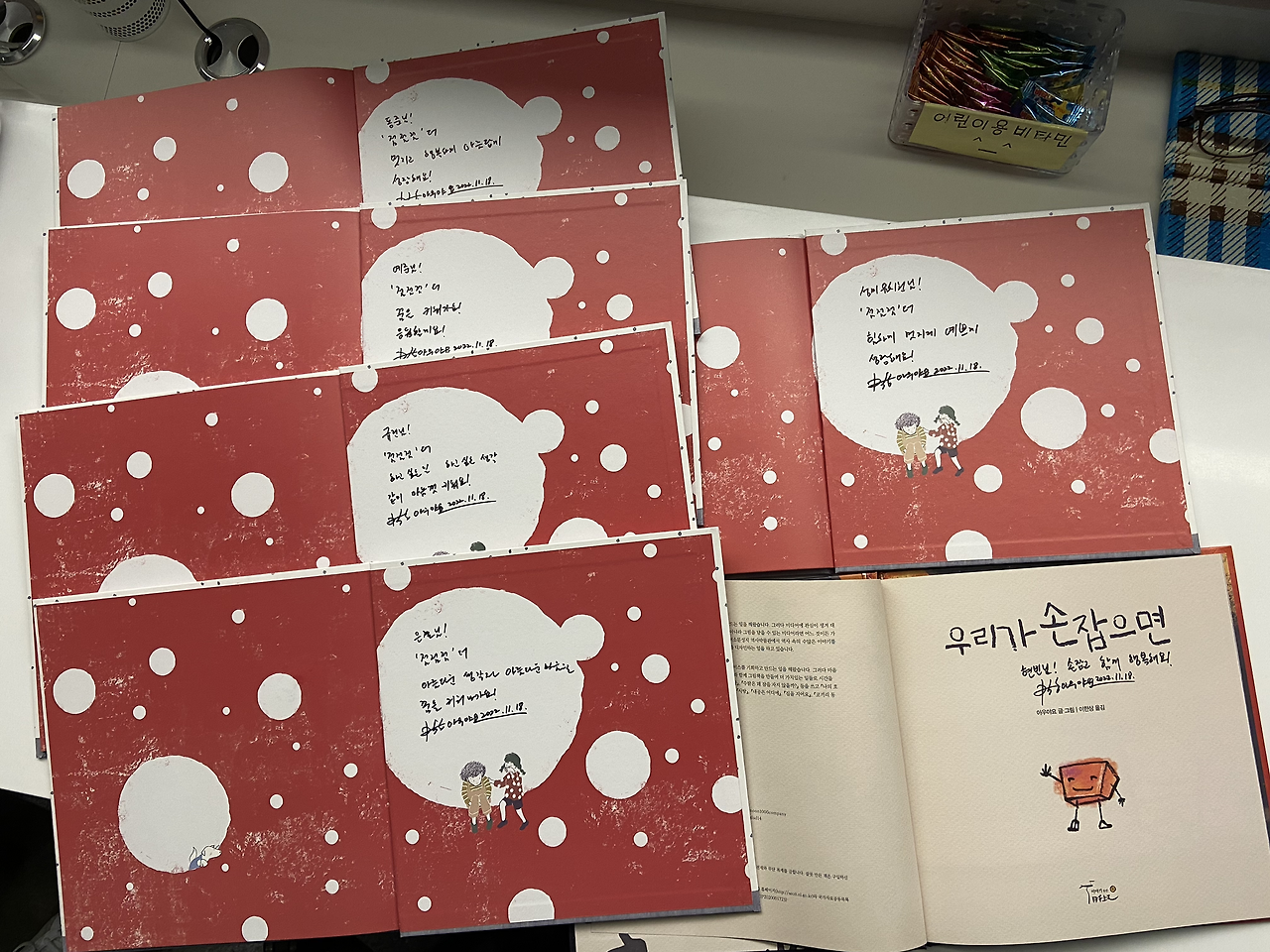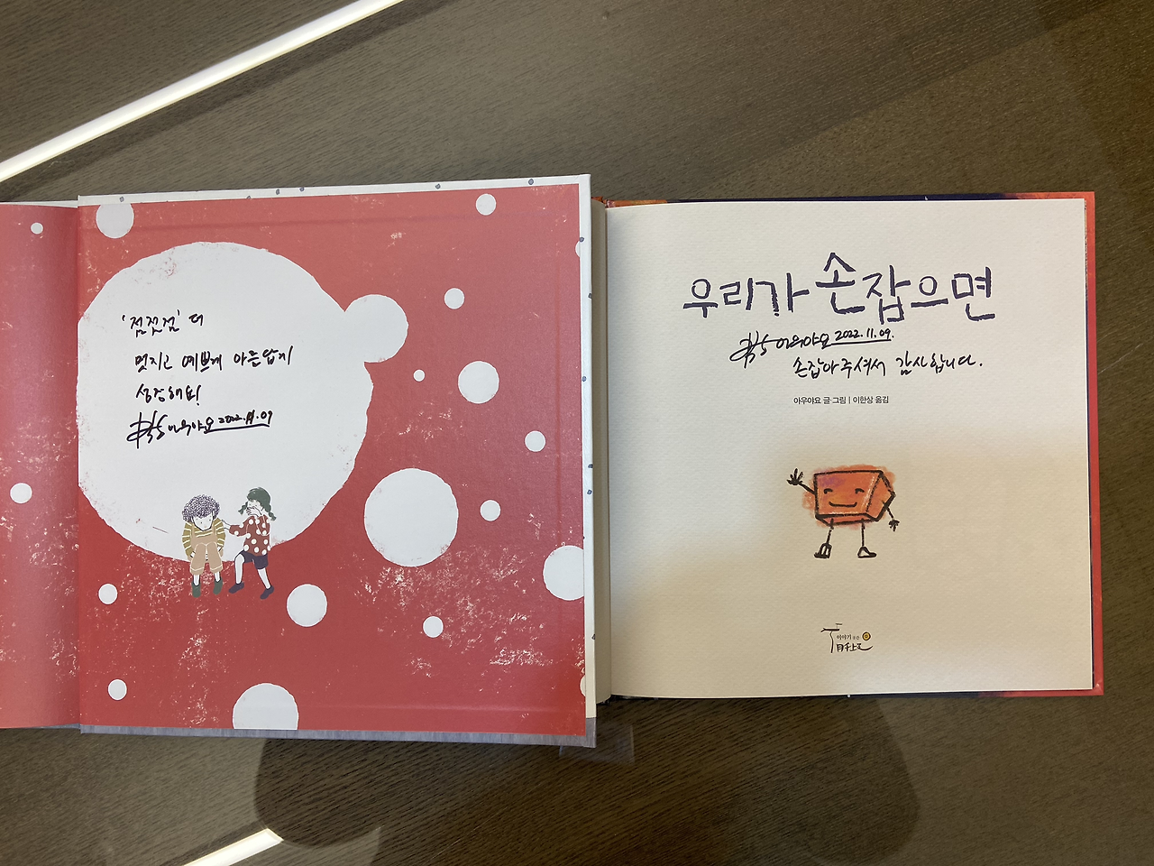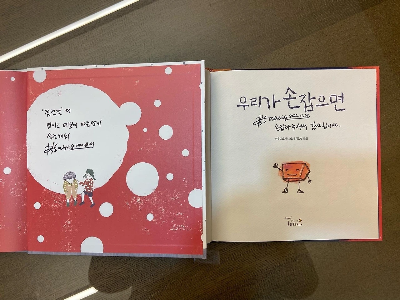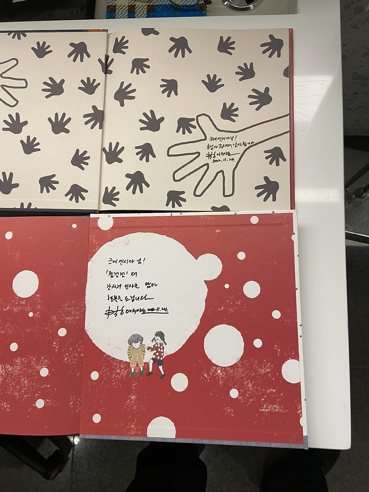 한 번은 광화문 교보에 책 보러 간 가족들이 ‘점점점’ 책을 보고 구매하시고 작가 이름을 검색해서 ‘우리가 손잡으면’도 구매하시고 박물관에 근무하는 정보를 입수하시고, 찾아오시고, 아이들 한 명 한 명의 꿈을 얘기하시고, 그 꿈대로 한 명 한 명 정성스레 싸인하고…. ㅎ