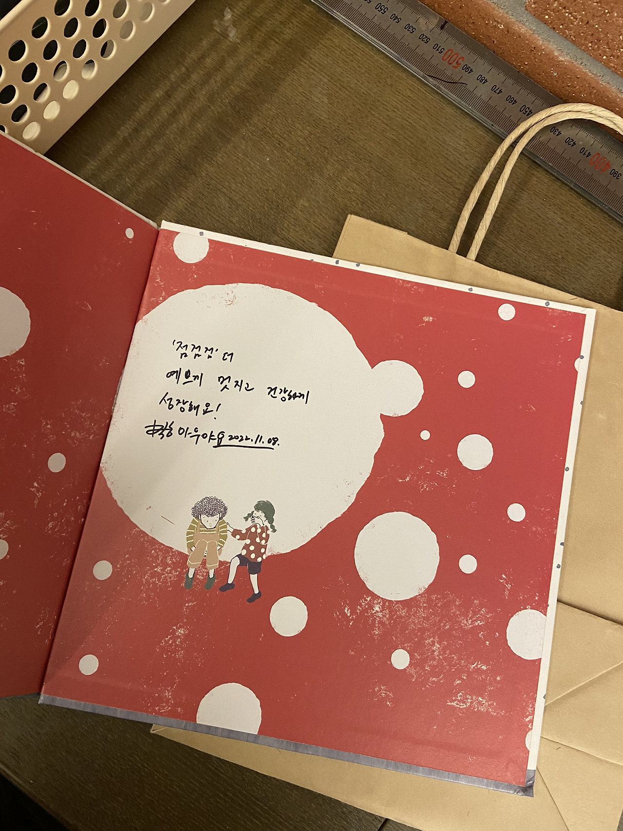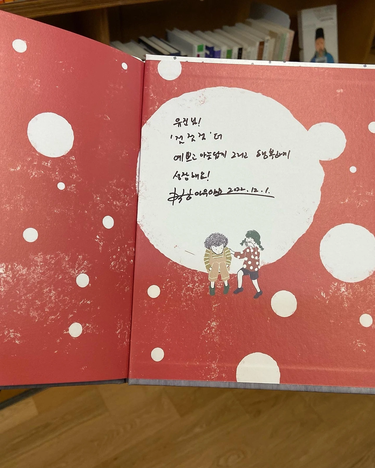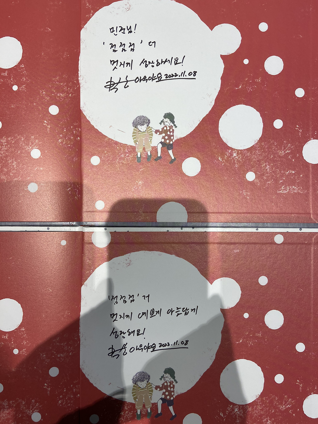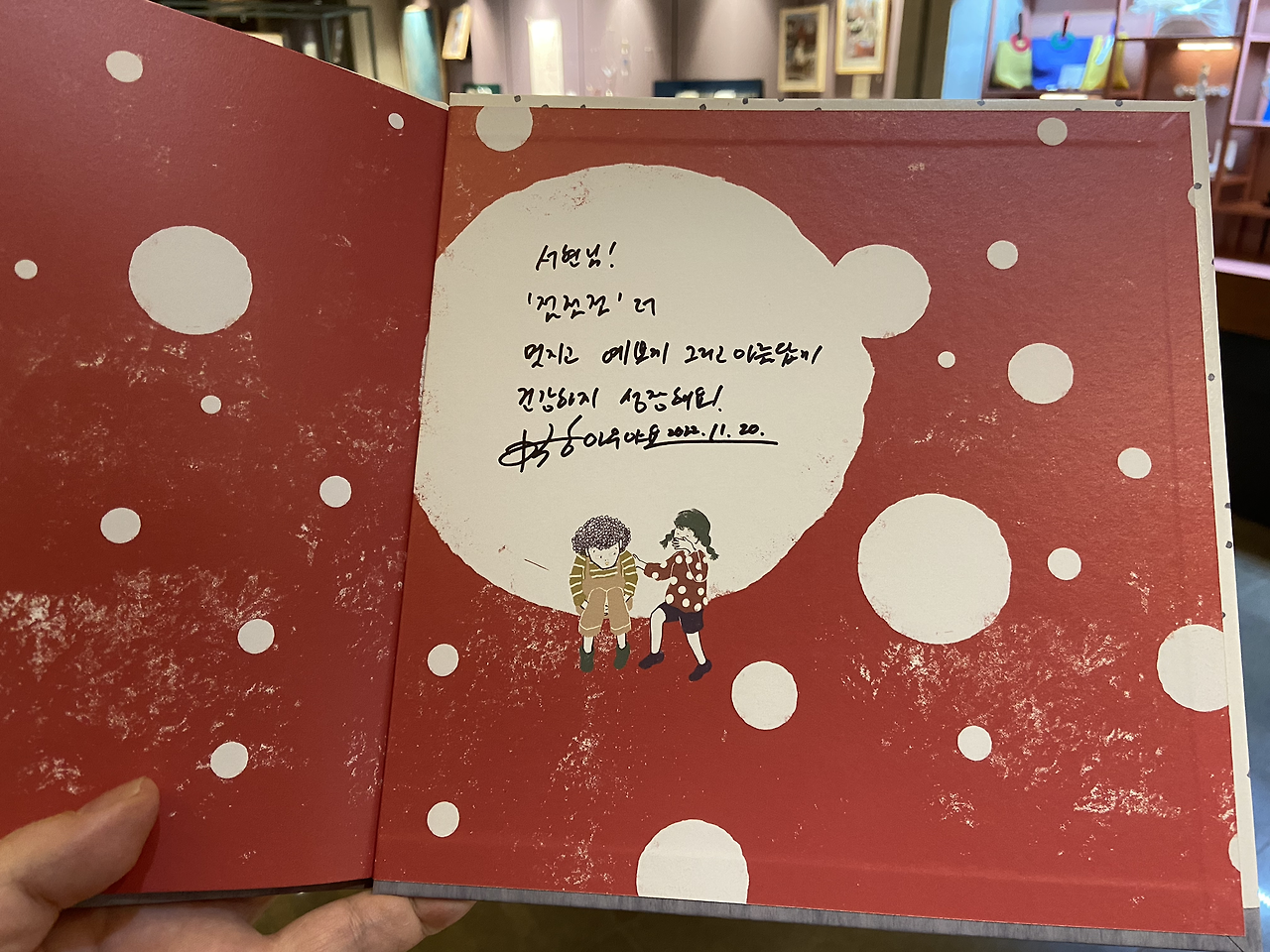한 번은 광화문 교보에 책 보러 간 가족들이 ‘점점점’ 책을 보고 구매하시고 작가 이름을 검색해서 ‘우리가 손잡으면’도 구매하시고 박물관에 근무하는 정보를 입수하시고, 찾아오시고, 아이들 한 명 한 명의 꿈을 얘기하시고, 그 꿈대로 한 명 한 명 정성스레 싸인하고…. ㅎ