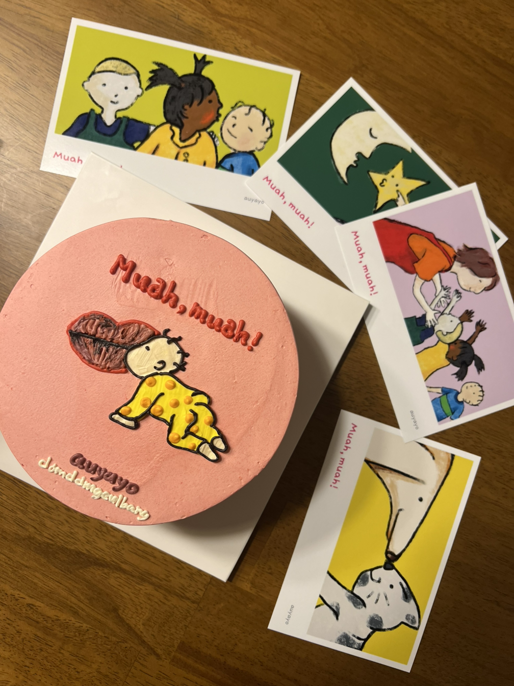 이어서 담담 글방 대표님과 부군(?), 그리고 저를 만나기 위한(일단 북토크이니 이렇게 써본다. ㅎ) 팬분들이 오셨다. 그분들과 자연스럽게 <Muah, muah!>가 만들어진 배경과 아픔과 기쁨등을 이야기하였고 <우리가 손잡으면>, <점점점> 아우야요그림책에 대한 또 다른 이야기를 나누었다. <Muah, muah!> 표지를 따라 만들어진 케이크와 간단한 다과는 잔치, 파티였다!