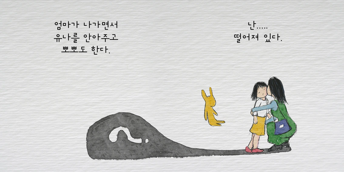 유나의 모습은 뾰로통 해져 있다. 그리고 어색하다. 토끼는 뒤로 빠져있다.