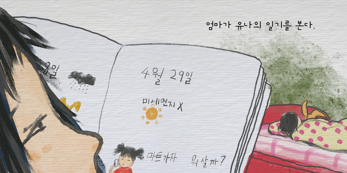이 장면은 엄마가 운다. 왜 울까? 아이의 일기에 뭐가 있길래?