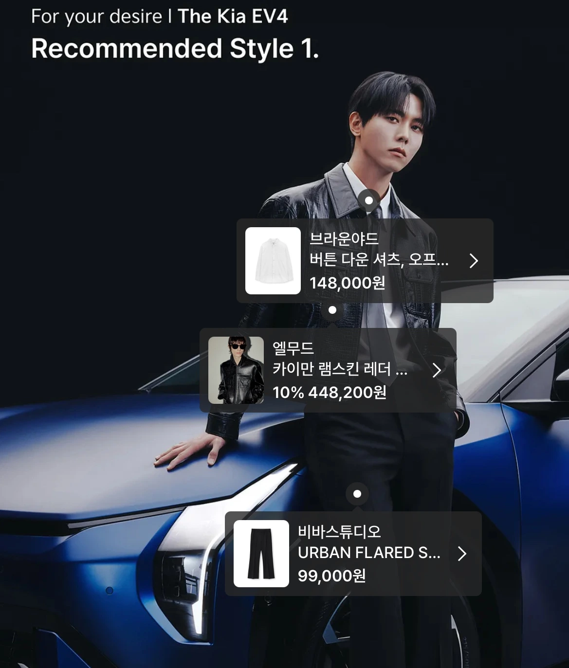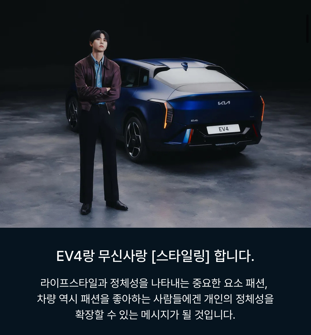 무신사 사이트에 방문해 보면 기아 EV4와 어울리는 시크한 패션 스타일을 제안해 준다.