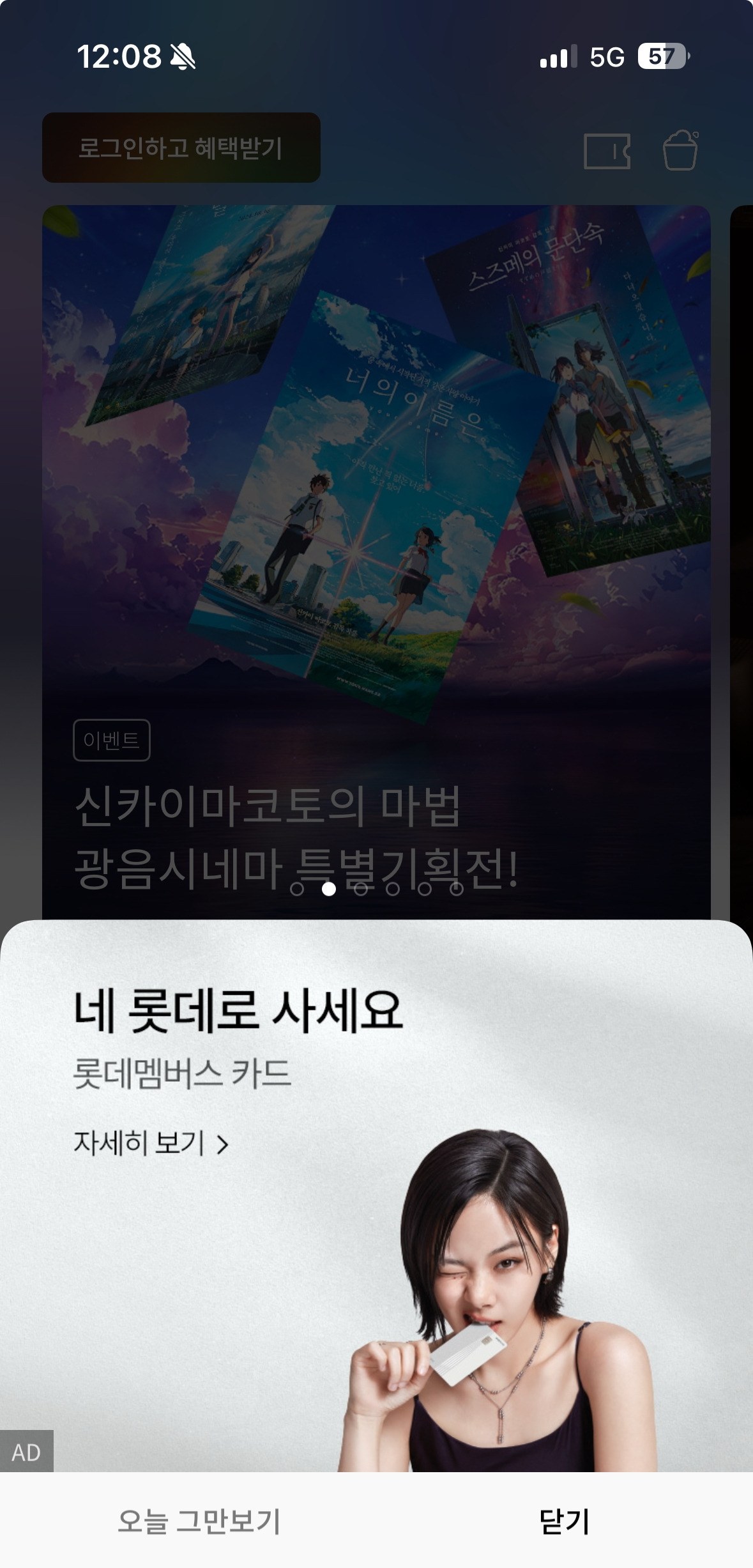 롯데시네마 영화 예매를 알아보려 앱에 접속했다.