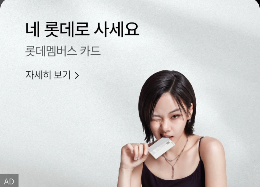 찡긋하는 눈과 도발적인 표정의 모델도 모델이지만 (가수 비비 씨 같기도 한데 정확하질 않다. 롯데카드 비비를 검색해 봐도 딱히 이력이 나오진 않는다)