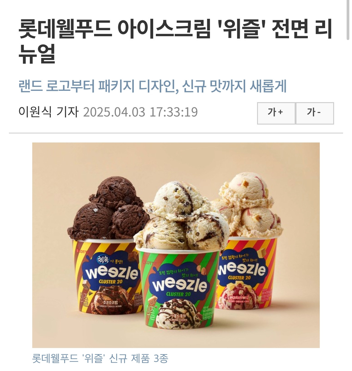 최근에 리뉴얼된 아이스크림 제품 위즐을 보면 기분이 좋다.