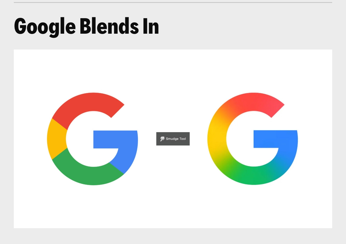 스머지 툴은 컬러나 조형을 문지르거나 뭉갤 때 쓰는 툴인데, 구글의 각 컬러들에 경계를 흐리게 한 이번 변화를 빗대서 표현한 것이다.