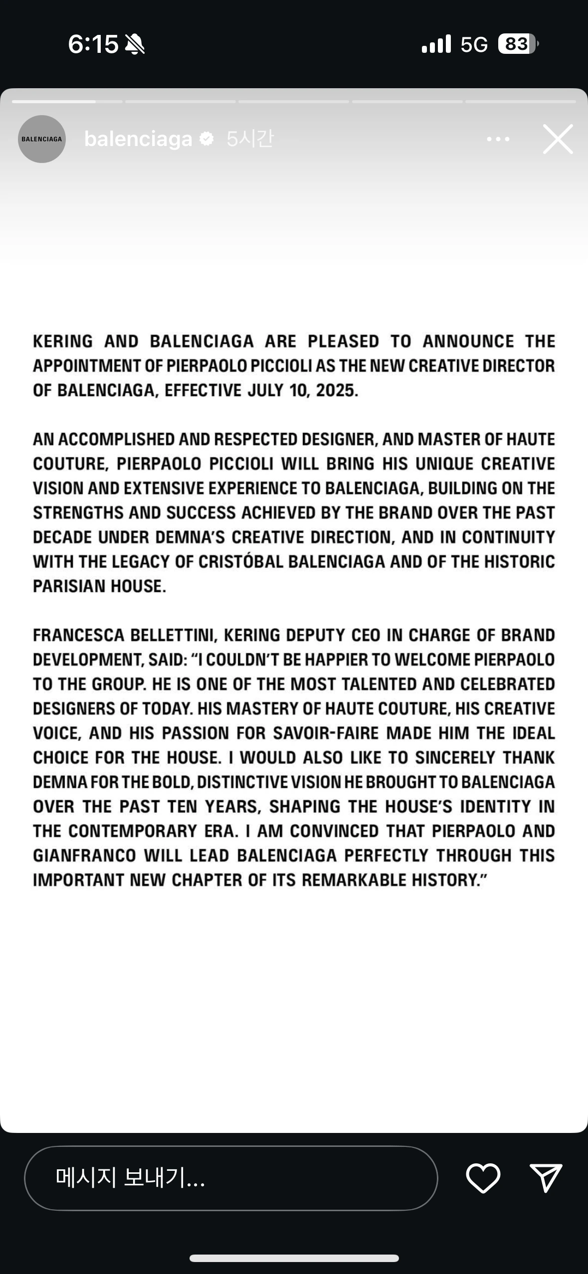 대충 내용을 보니 새로운 크리에이티브 디렉터로 '피엘파올로 피촐리(Pierpaolo Piccioli)를 임명했다는 소식이다.