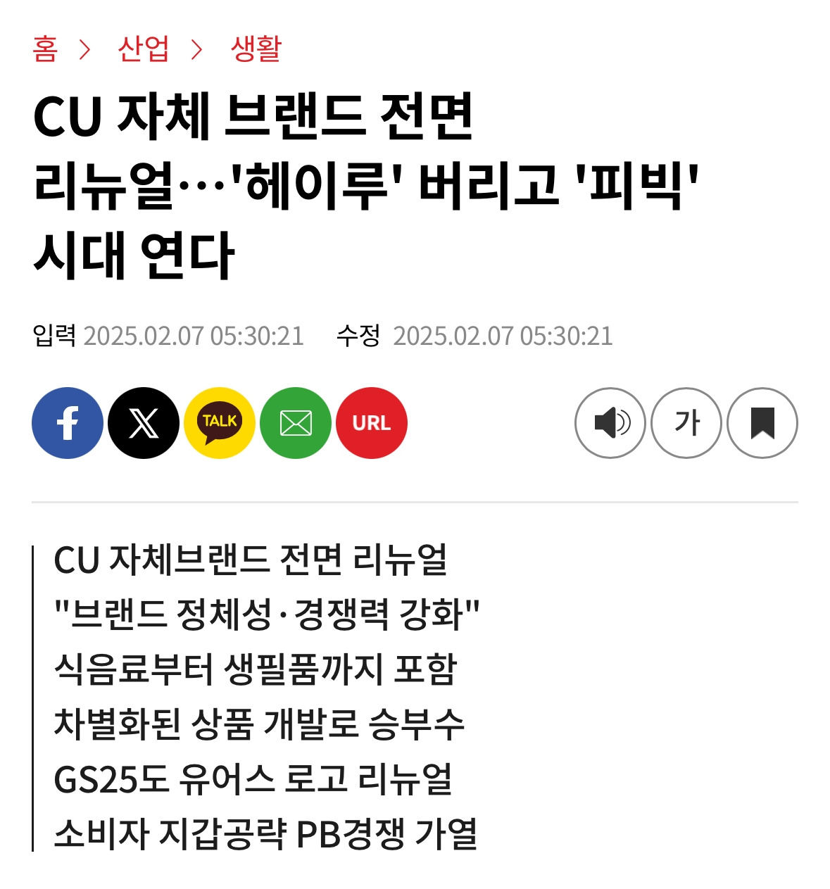 그런 CU에서 자체브랜드를 리뉴얼했다는 기사를 봤다.