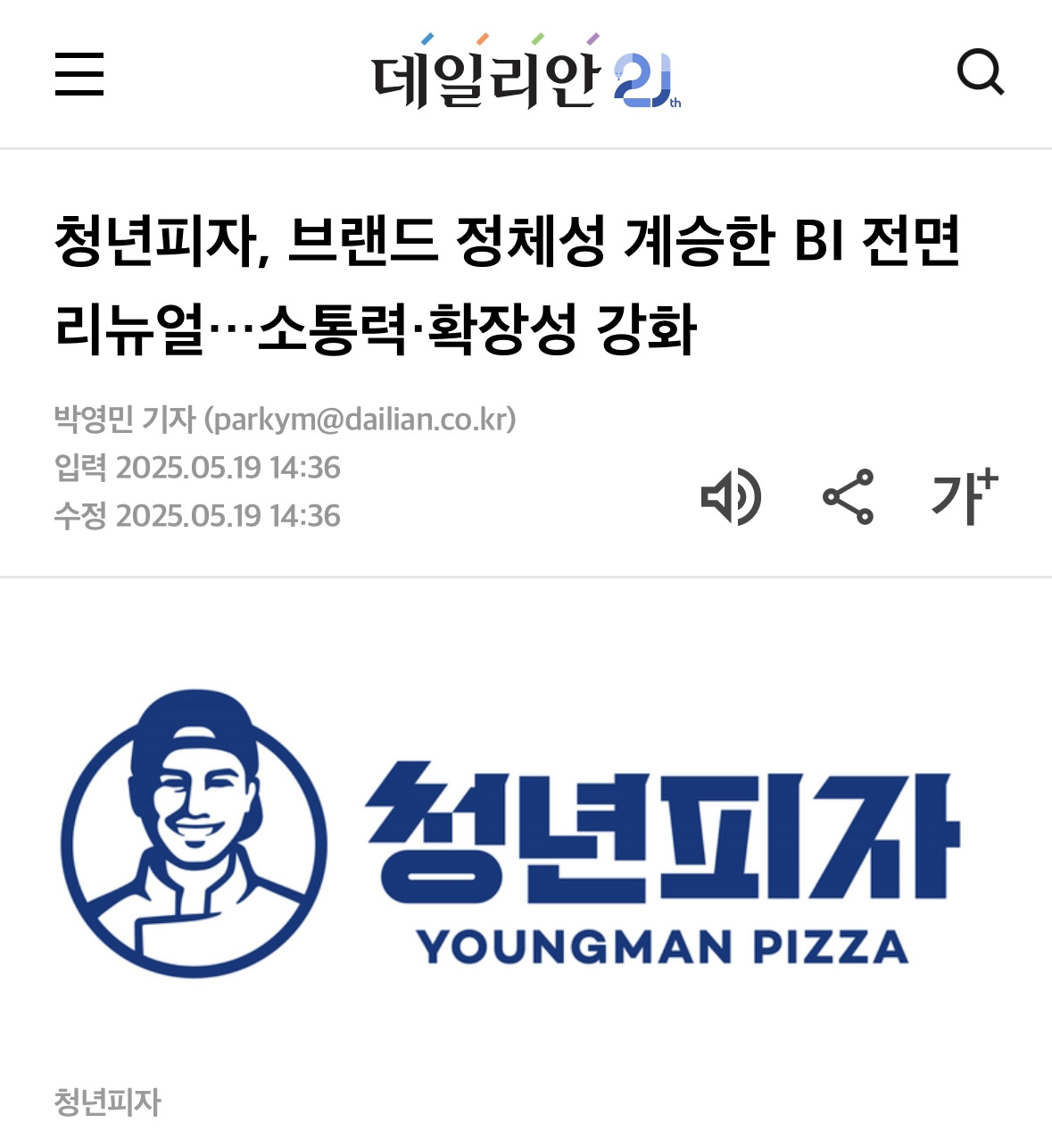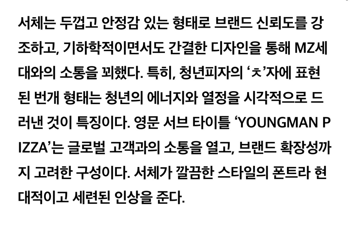 구태의연한 유사성 운운하고 싶은 건 아니다. 다만 청년피자 BI 디자인을 기획한 디자인 에이전시, 디자이너가 의도했든 안 했든 한글 조형 중에서도 비슷해 보인다 판단되면 피하는 게 우선 아닐까.