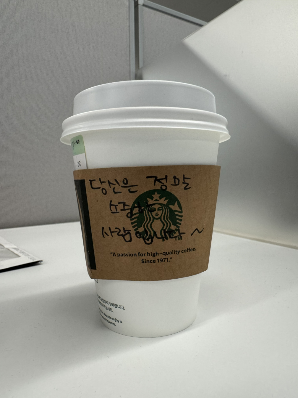 그러고 보니 간혹 이렇게 손글씨가 담긴 커피를 받았던 것 같다.