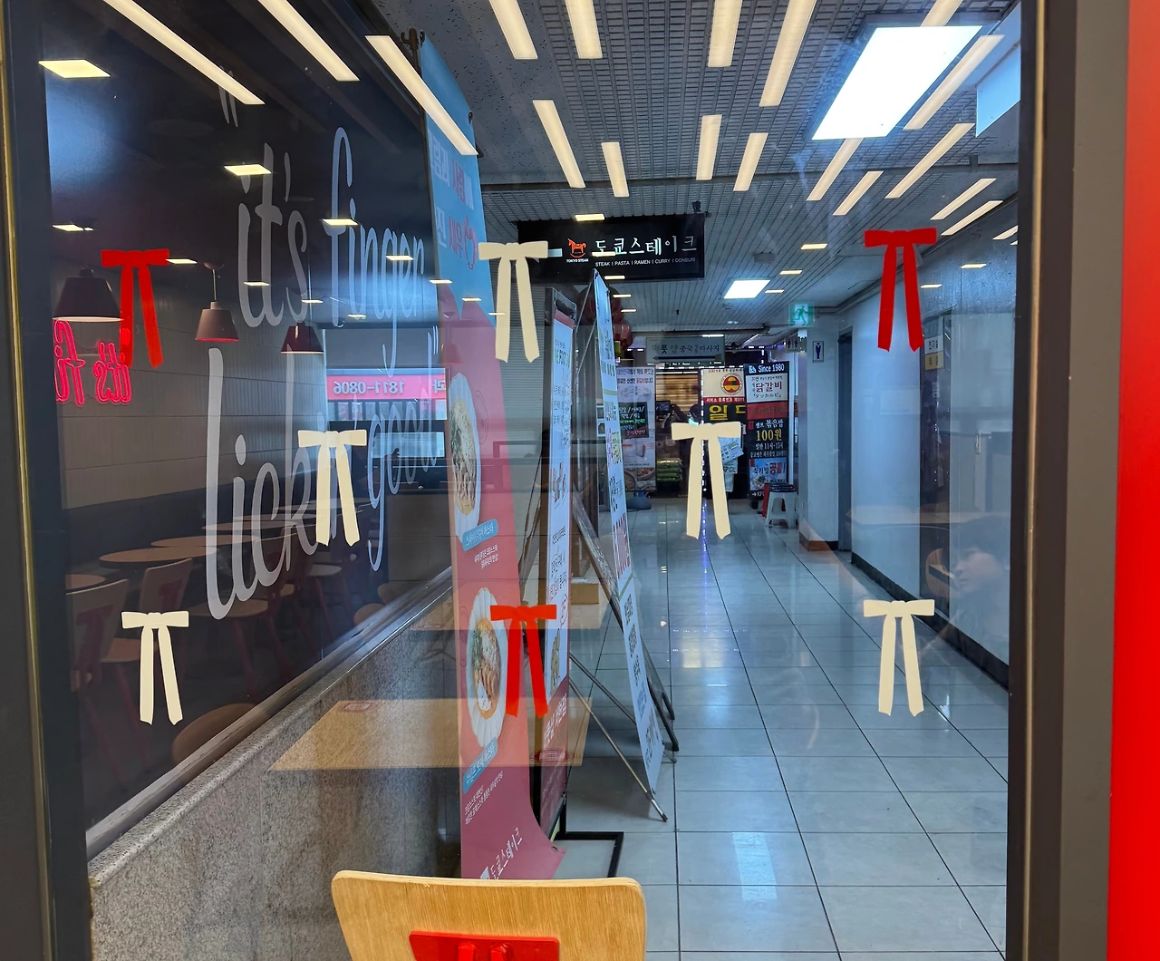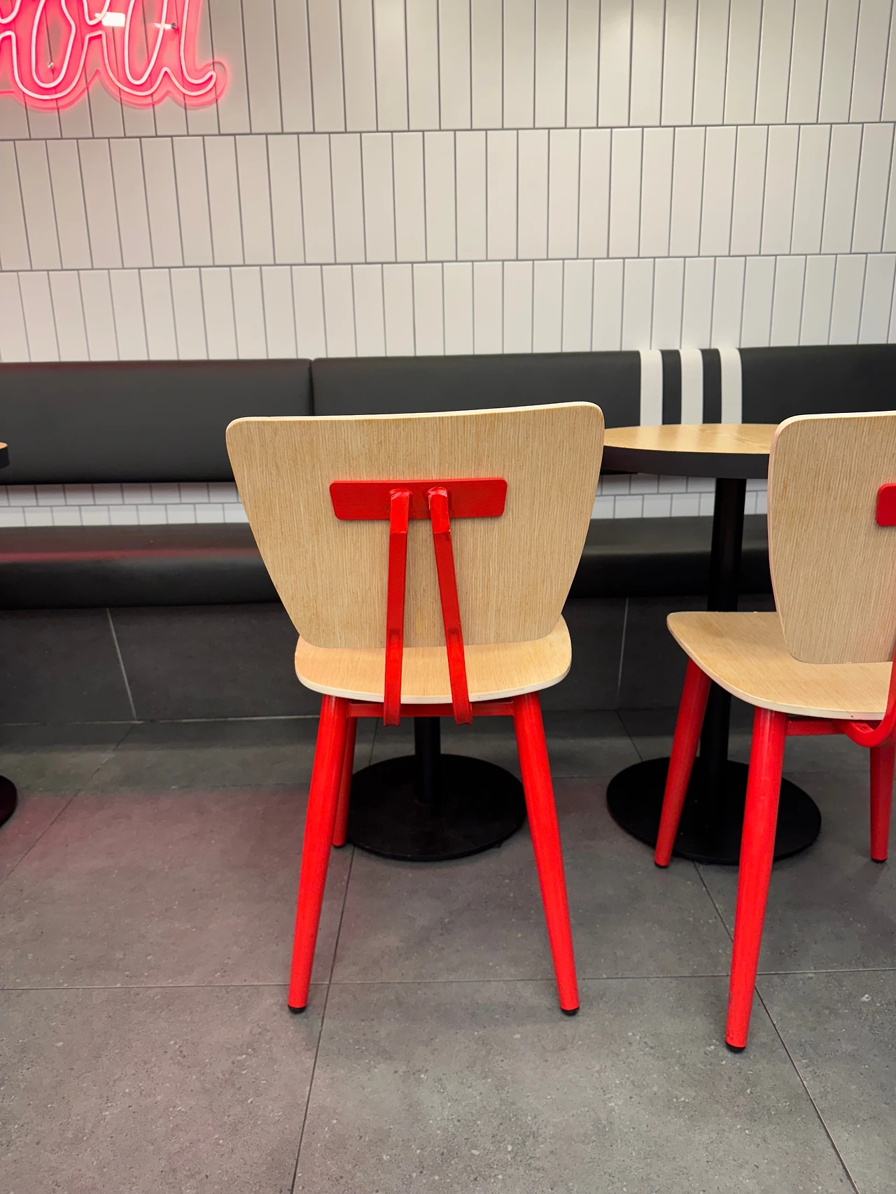 바로 매장 의자 뒷면에 프레임.