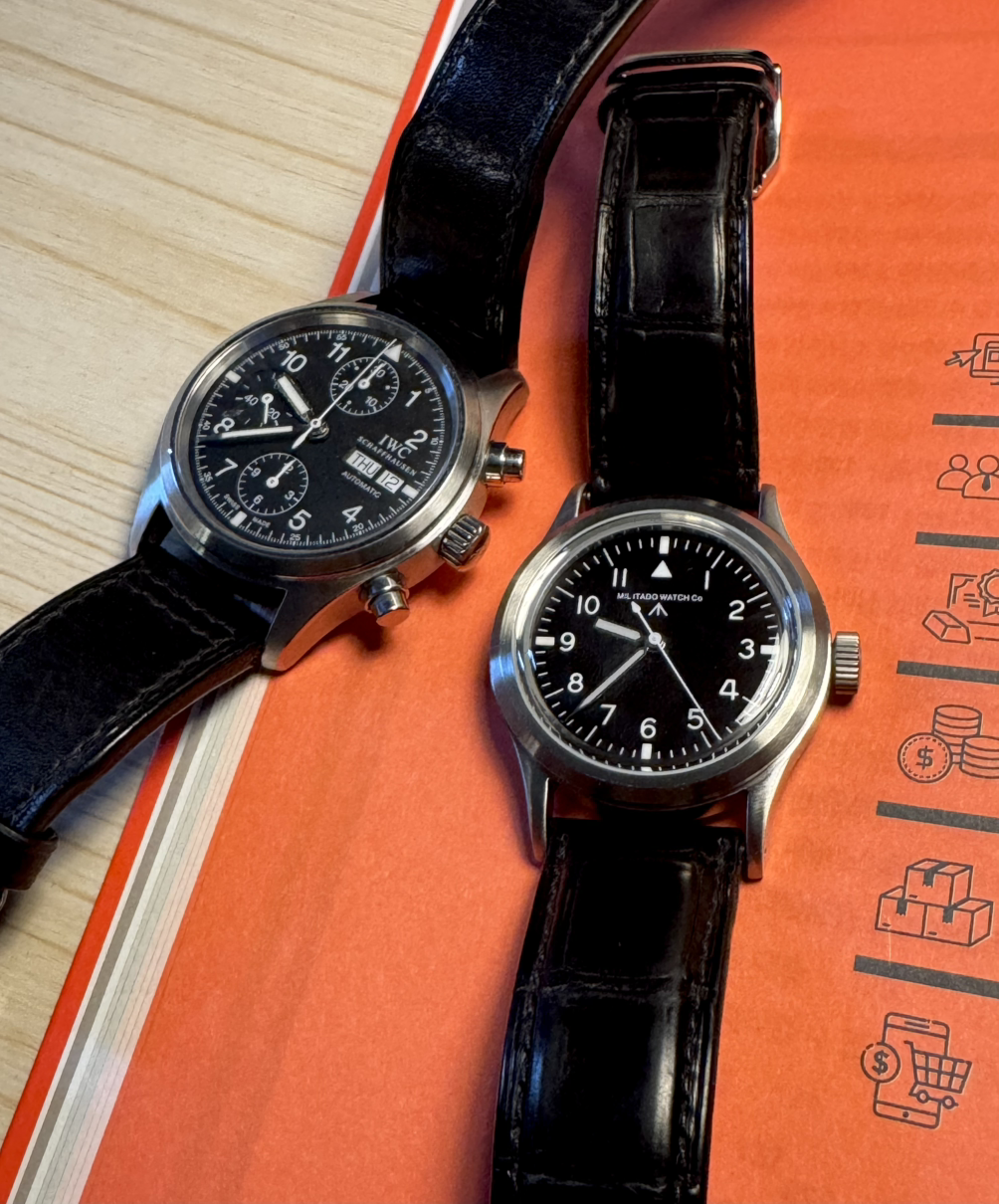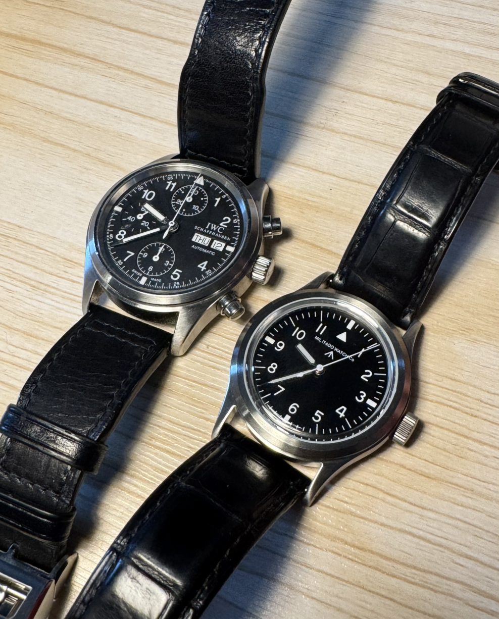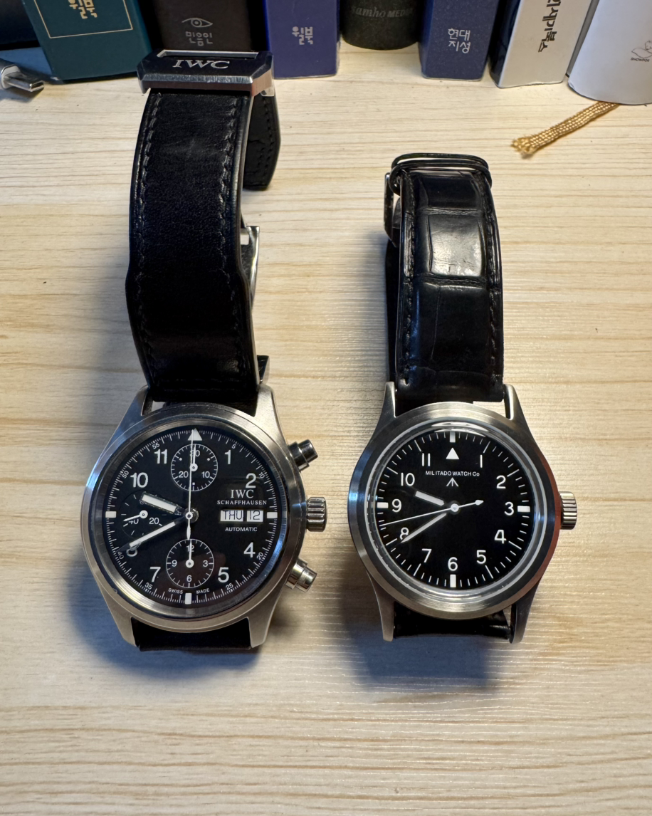 사실 이게 가장 큰 이유인데, 내 애장품이자 태어난 지 약 20년 된 IWC 플리거크로노와 나란히 놓고 보고 싶었다.