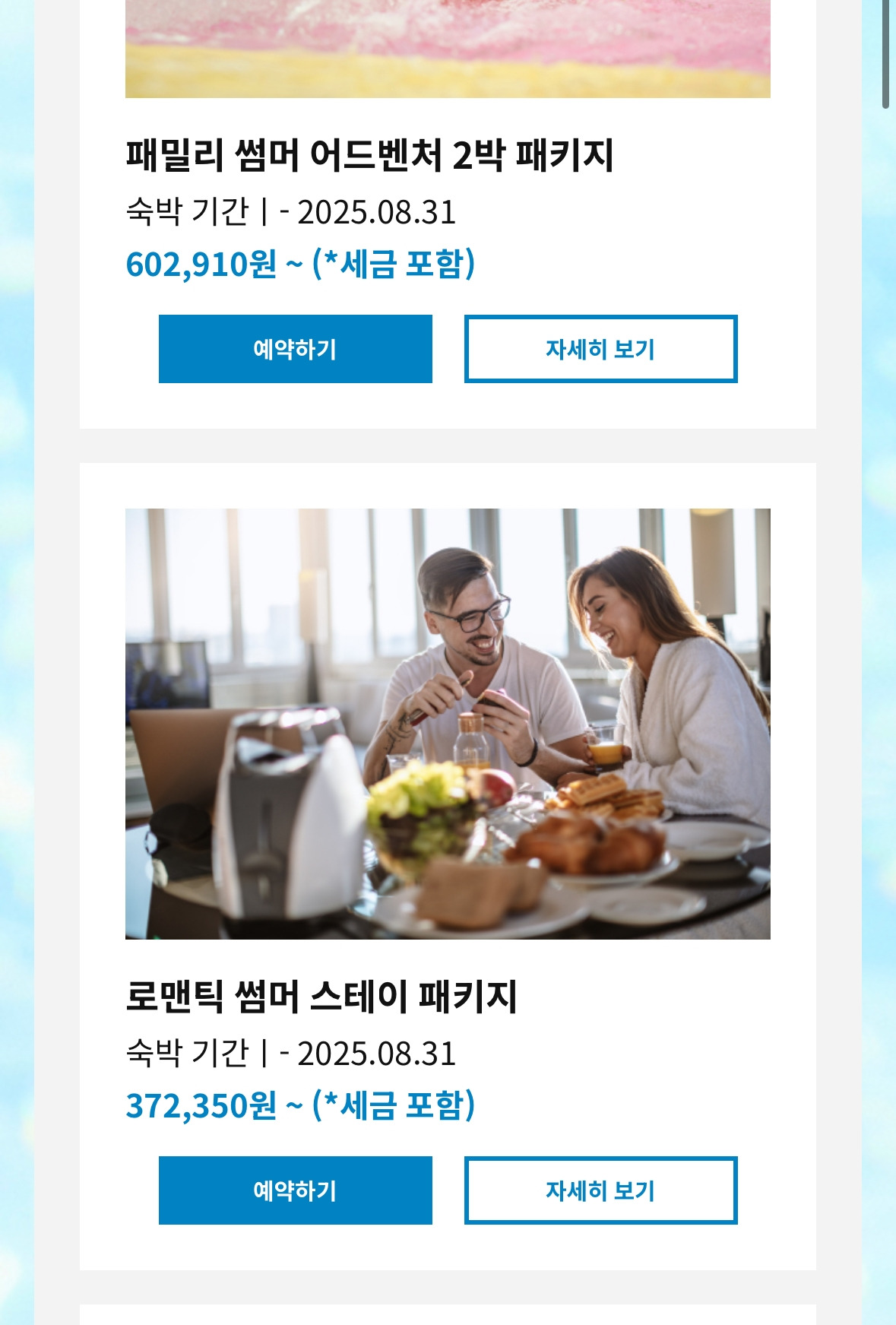 게다가 대표 상품 라인업도 주로 2박 패키지로 구성되어 있다. 물론 객단가를 높이기 위해 당연히 내세워야 하는 상품군이지만 대표 메시지와 어우러지니 설득력이 높아진다.