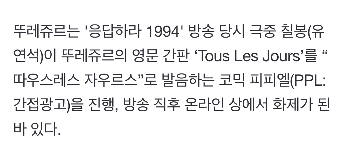 문득 응답하라 1994에서 기가 막혔던 PPL이 떠오른다.